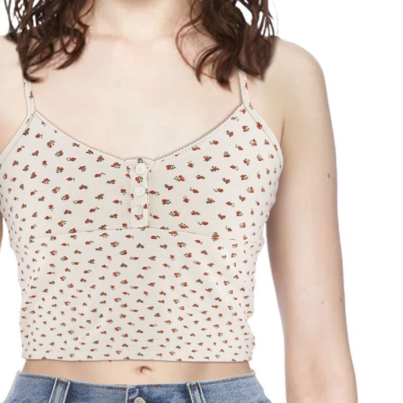 【月销10万】红色碎花内搭鞠夏季新款三粒扣吊带吊带背心上衣女