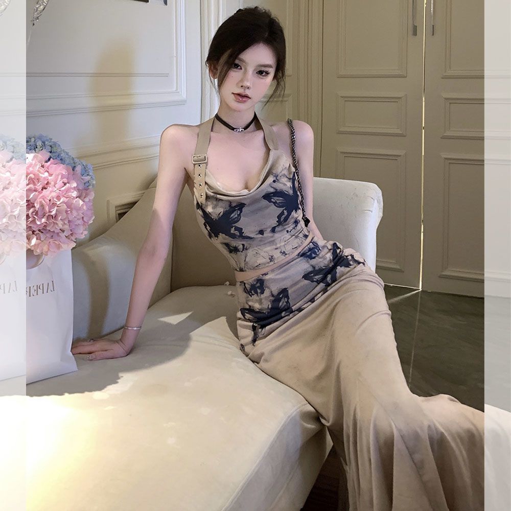 【月销10万】渲染印花吊带挂脖背心新款辣妹高级感小众显瘦上衣女