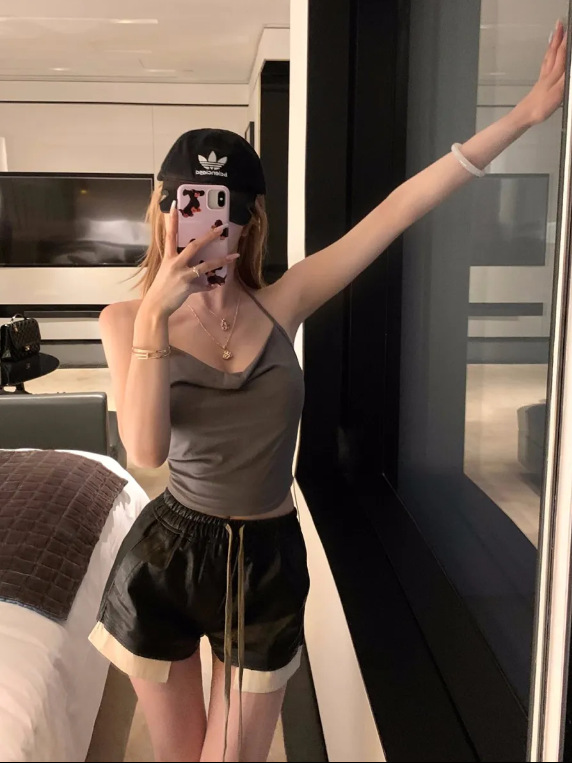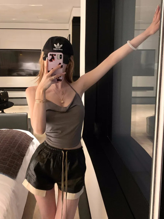 打底荡领显cup吊带纯欲风甜辣夏季设计挂脖短款背心