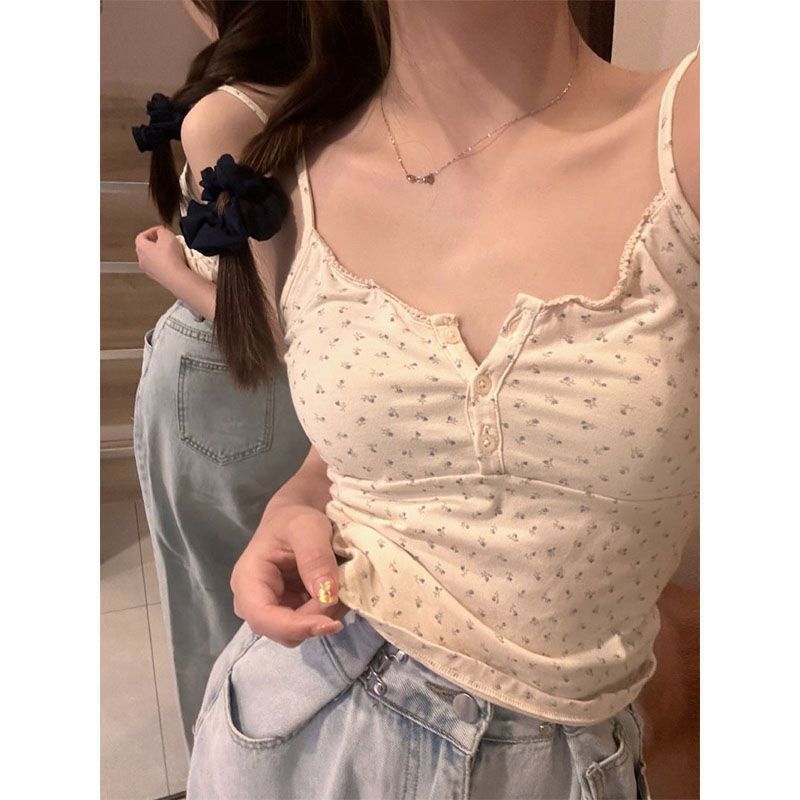 【跨境批发】吊带背心女夏新款甜辣妹短款新款玫瑰花印花辣妹吊带