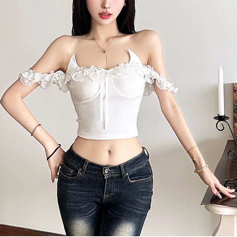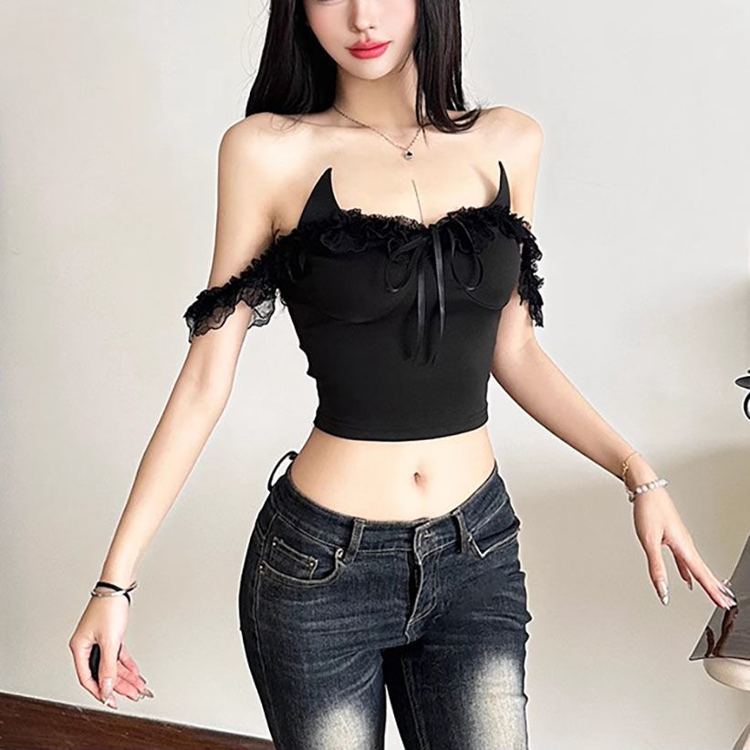 夏季辣妹蕾丝花边蝴蝶结吊带背心显瘦露脐短款上衣女