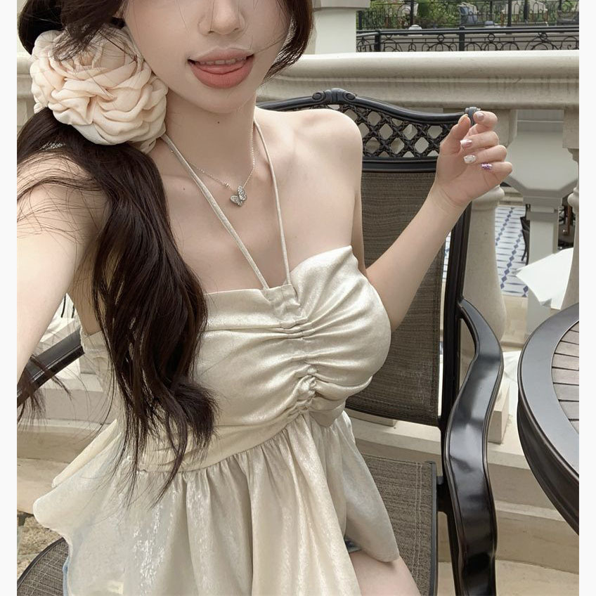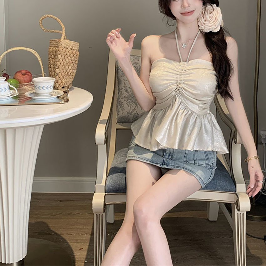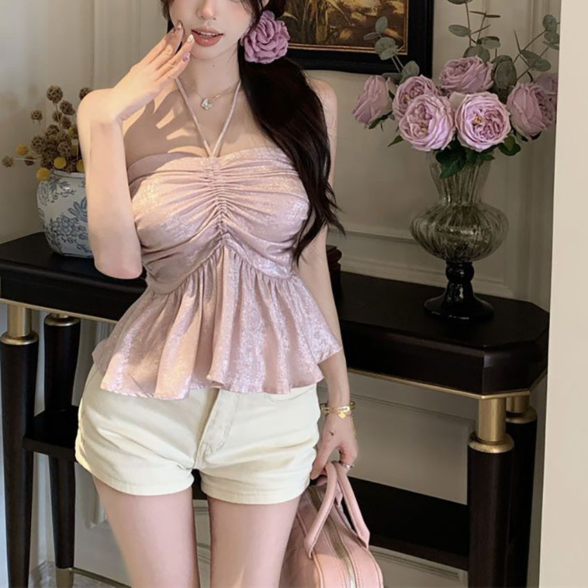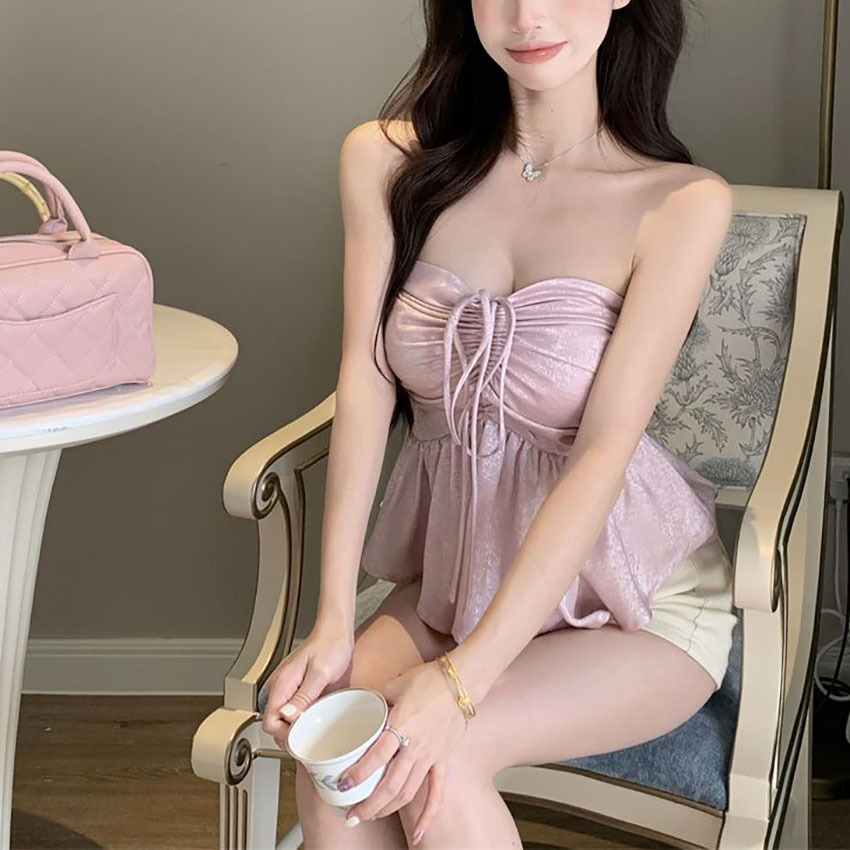 【月销10万】粉色挂脖小吊带背心女外穿夏性感一字肩抹胸上衣泰式