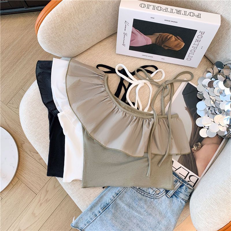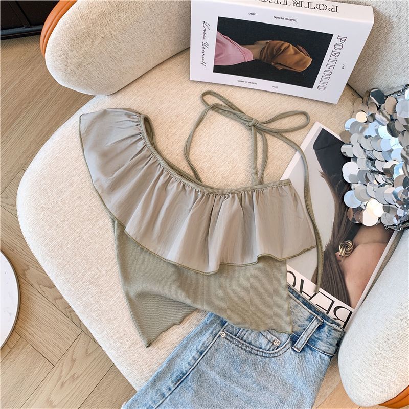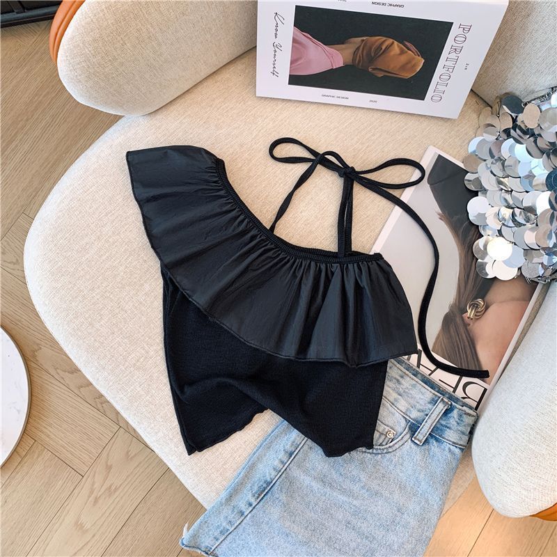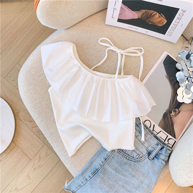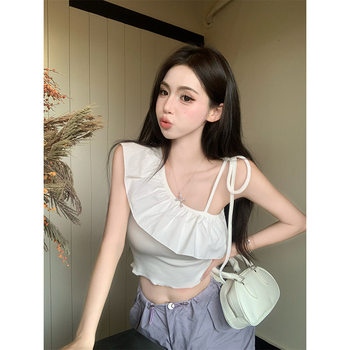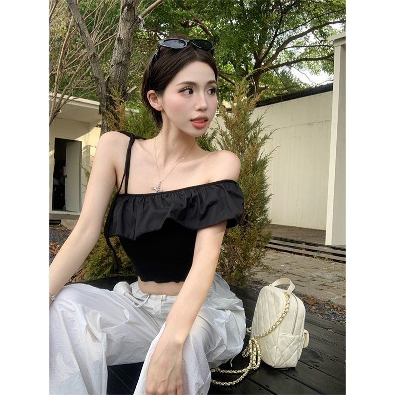 【月销10万】简约甜辣妹荷叶边斜肩吊带衬衫女夏季新款高级感上衣