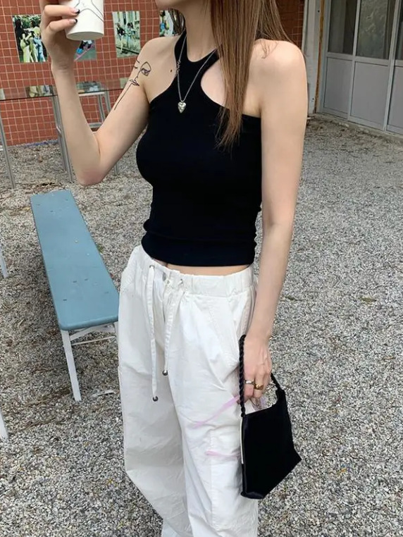 泰国甜辣妹短款修身挂脖纯色吊带背心修身显瘦美背外穿内搭上衣夏