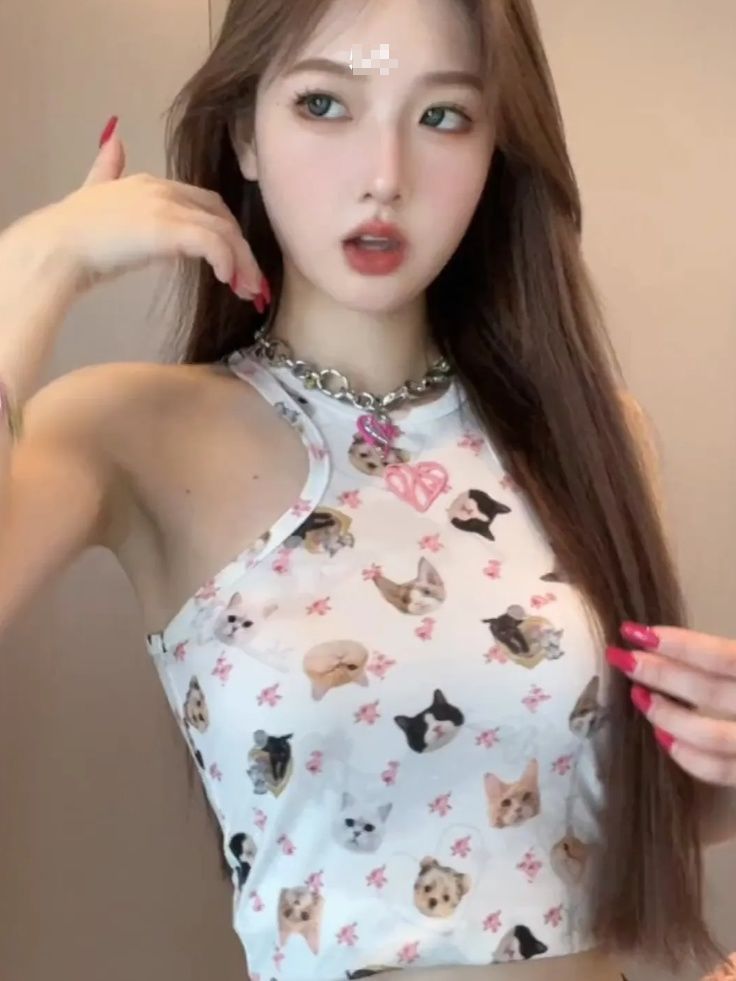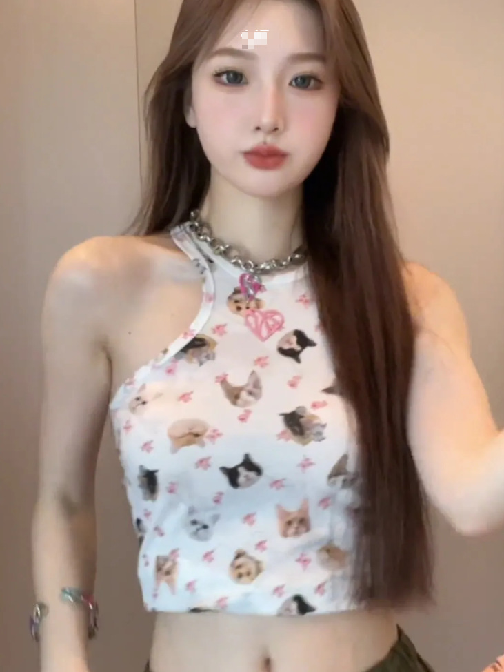 印花性感工字吊带背心露肩女夏修身短款内搭上衣外穿