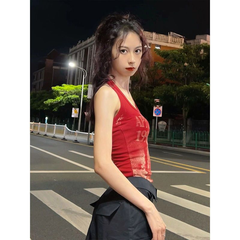 美式辣妹挂颈吊带背心外穿修身显瘦短款热辣上衣欧美