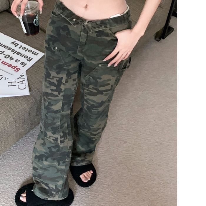 实拍实价~墨染撞色阔腿牛仔裤女春秋季新款高腰宽松直筒牛仔裤子