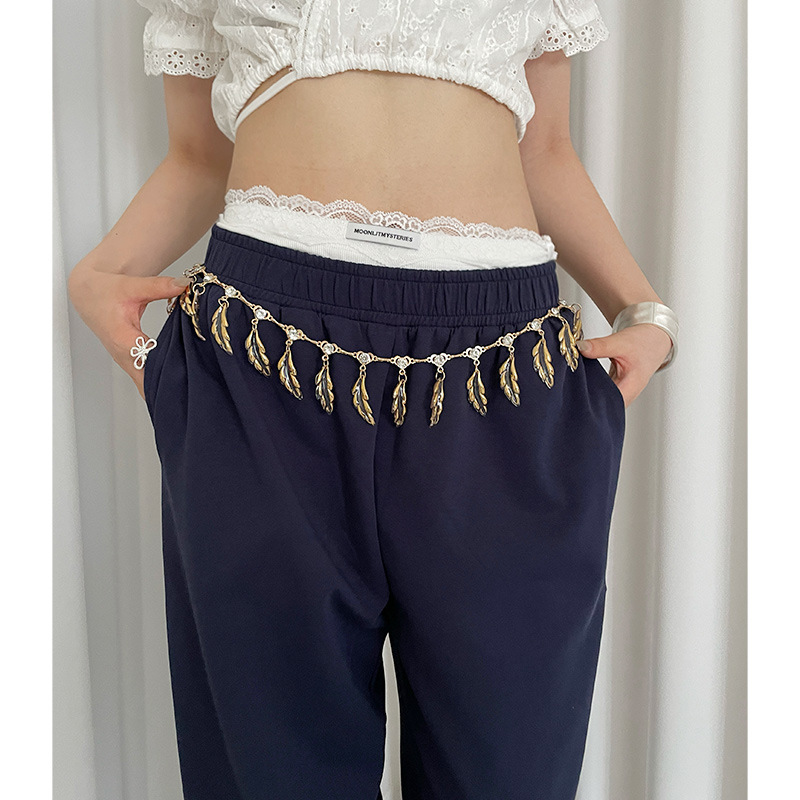 高级感民族风金属腰链女小众树叶流苏链条装饰配裙子牛仔裤腰带潮