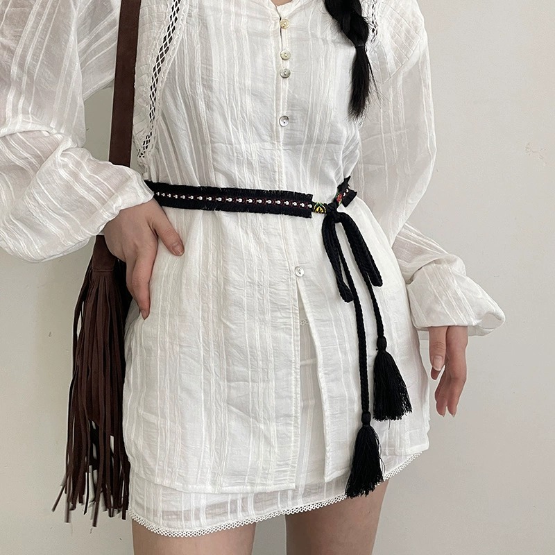 夏季新款腰带女士镂空复古民族风装饰配连衣裙收腰流苏腰绳