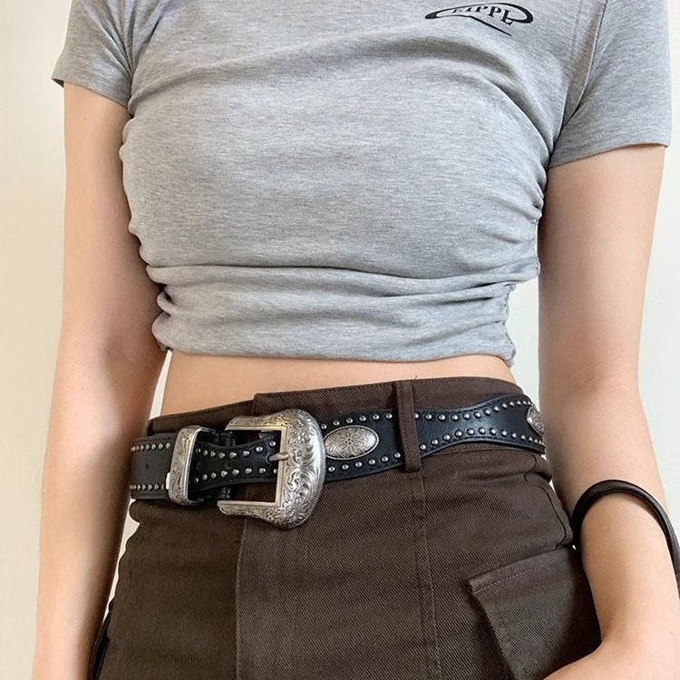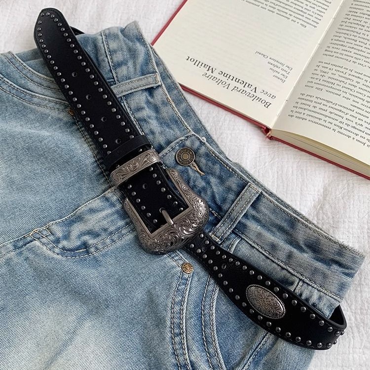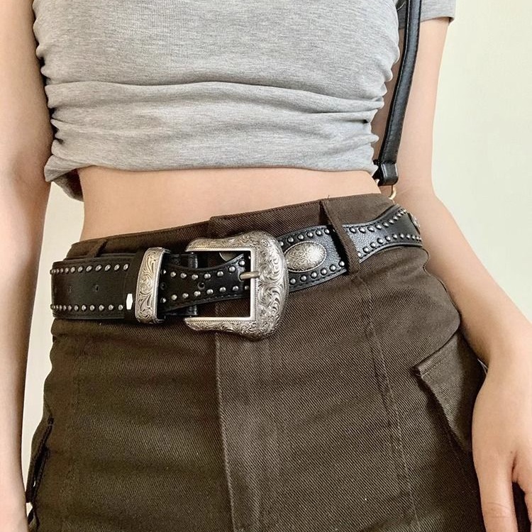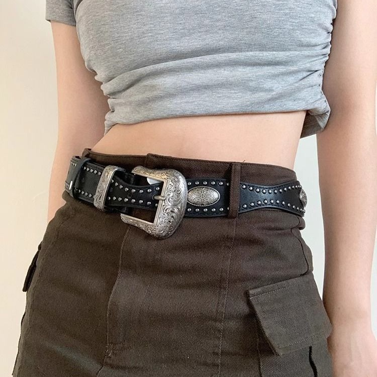 美式新款复古设计感小众时尚百搭腰带铆钉朋克风个性装饰辣妹皮带