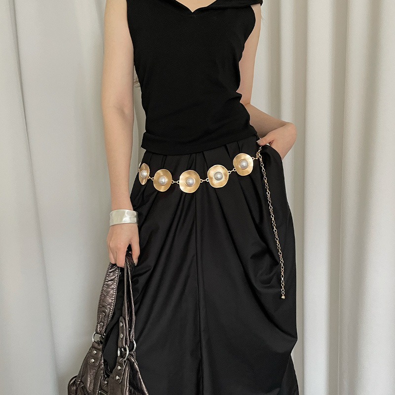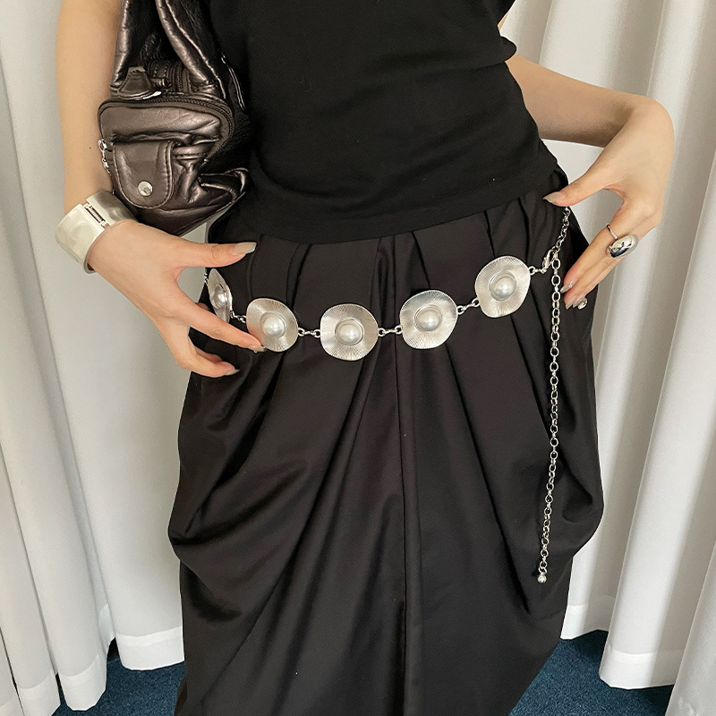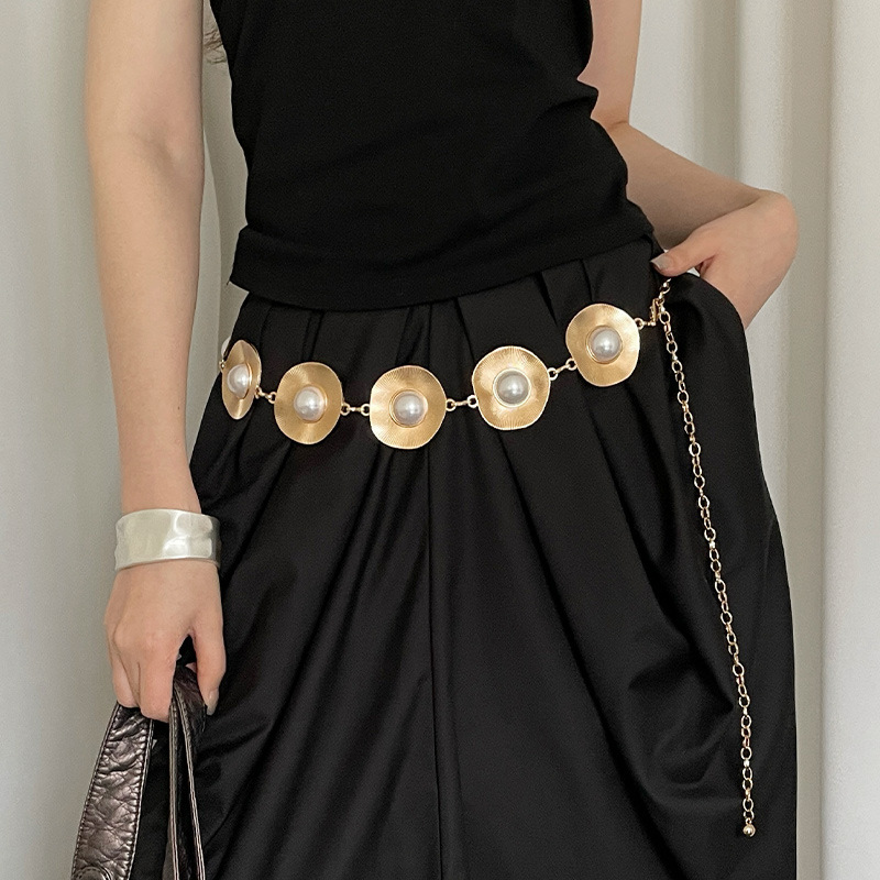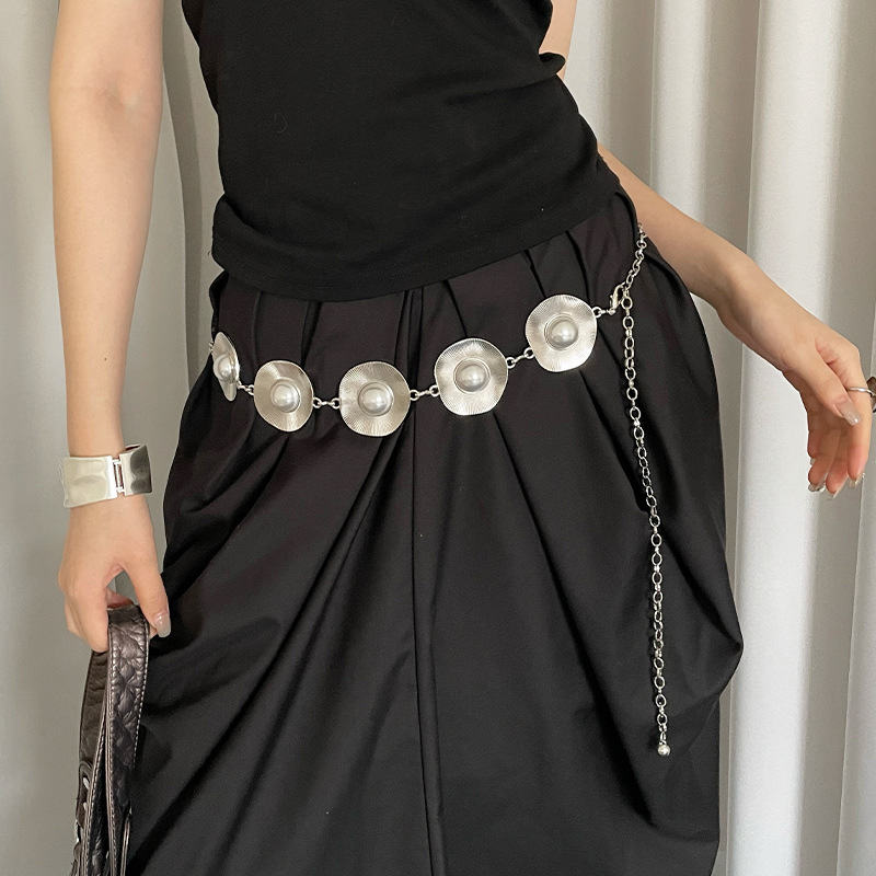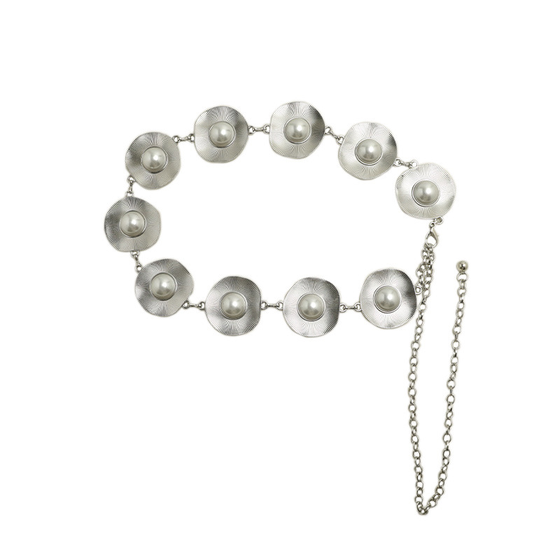 韩版仿珍珠镶嵌银色腰链女个性荷包蛋设计配裙子小众百搭显瘦腰带