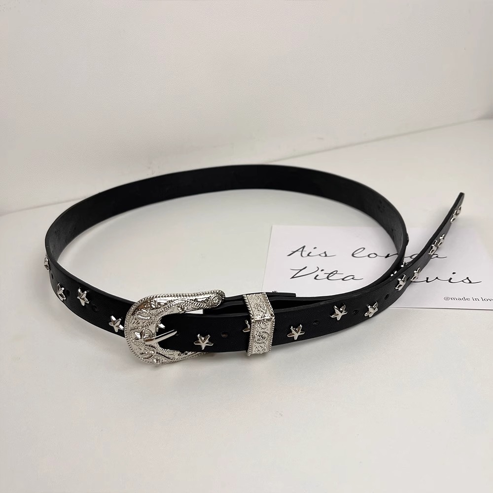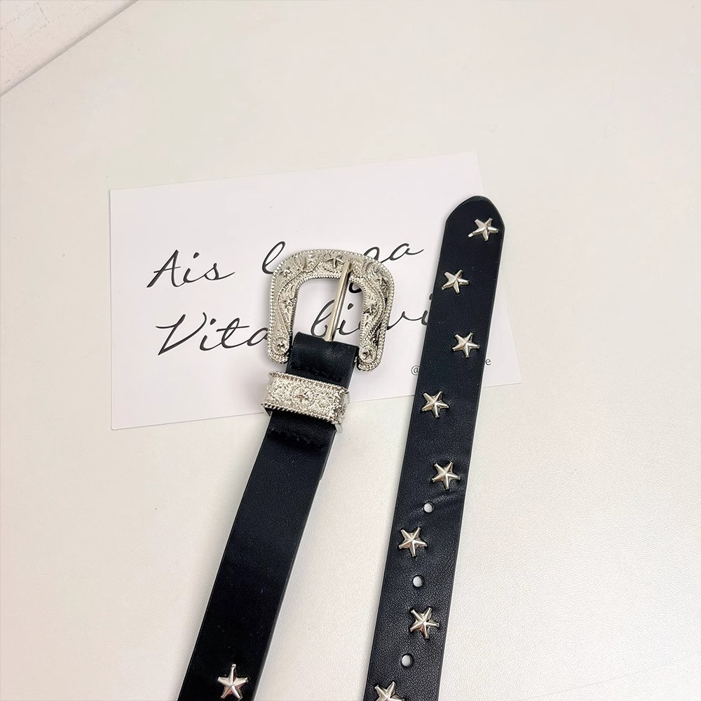 美式复古五角星女式腰带女百搭高级感皮带新款小众设计感配饰