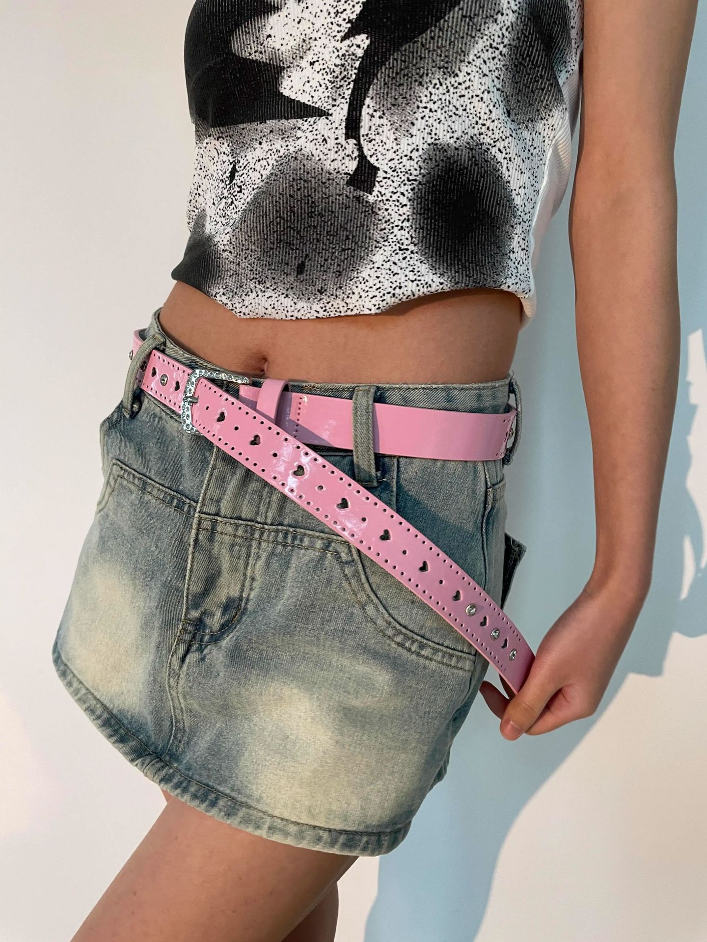 糖果色千禧复古辣妹水钻爱心腰带y2k甜美桃心彩色皮带牛仔裤带