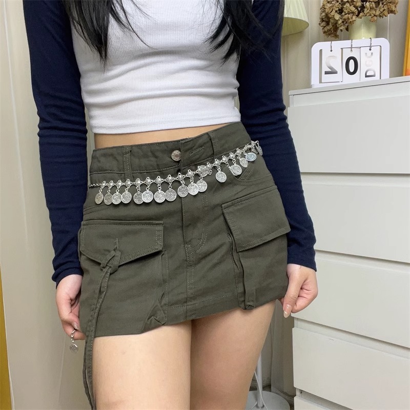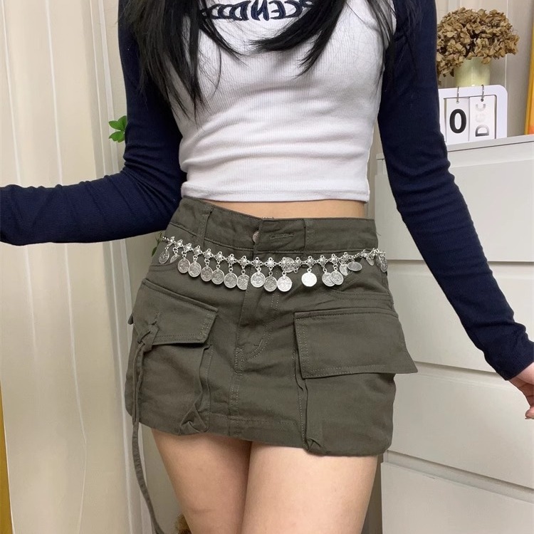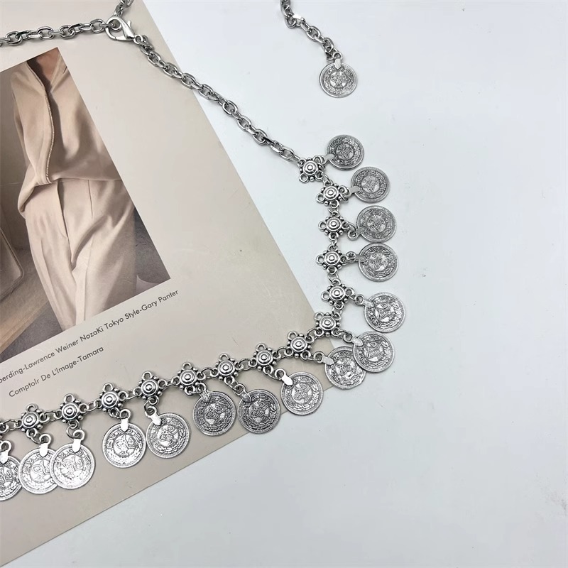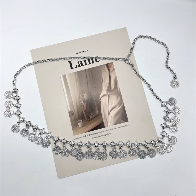 新款波西米亚长款硬币吊坠腰链女士复古民族风金属时尚腰带
