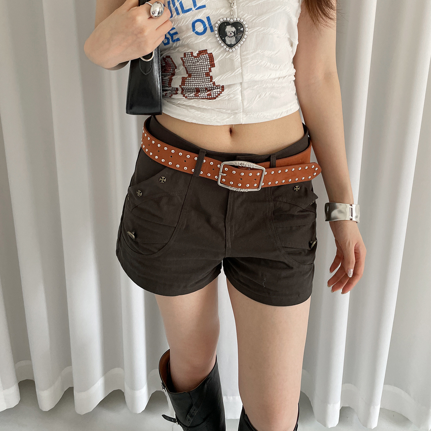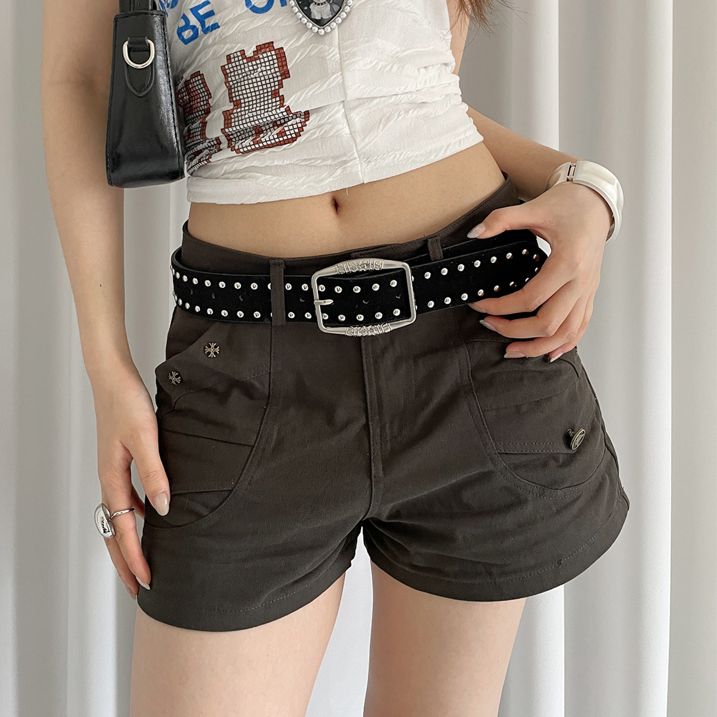 美式复古麂皮绒铆钉腰带女小众个性配裙子牛仔裤带设计感皮带装饰