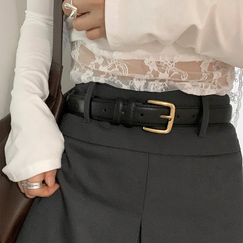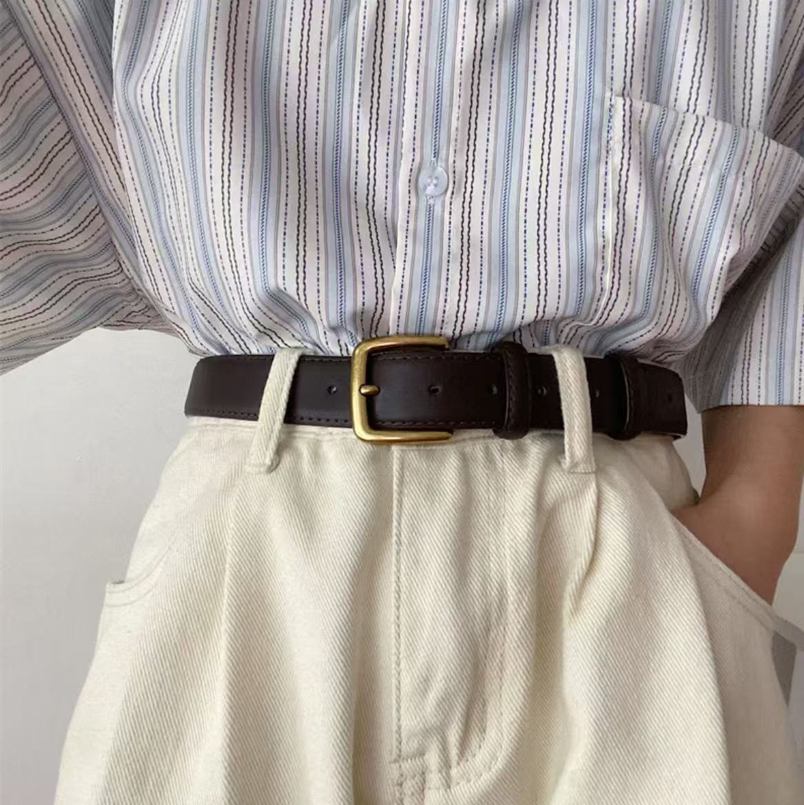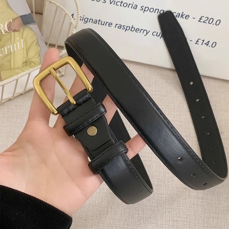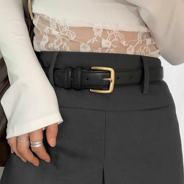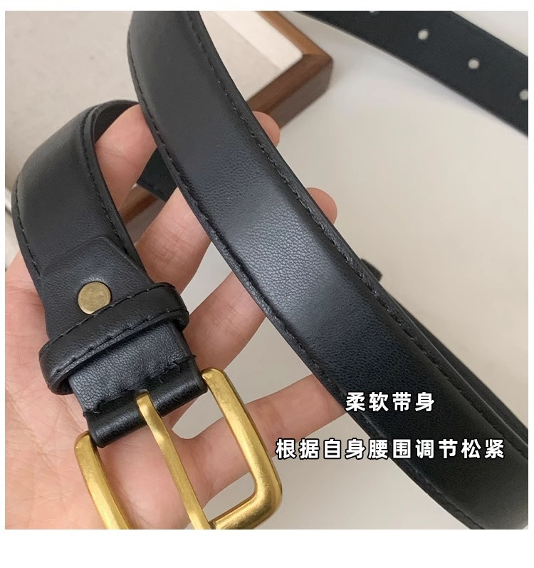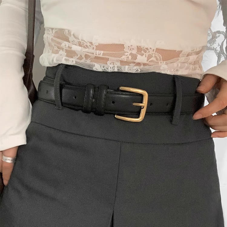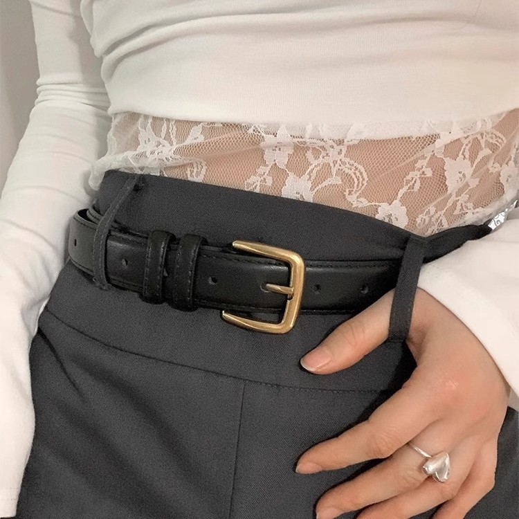 复古金扣黑色皮带女士高级感时尚百搭配牛仔裤腰带学生裤带装饰