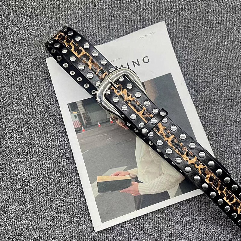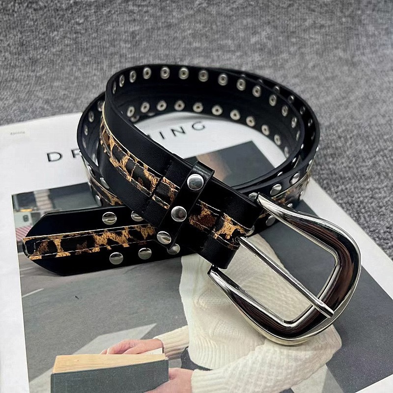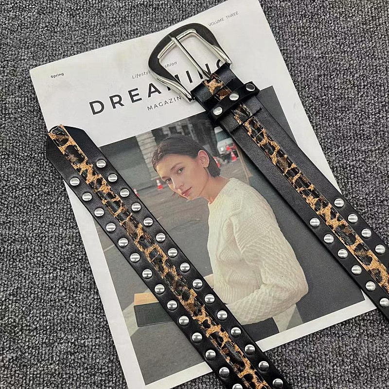 铆钉豹纹皮带女士蛇纹简约百搭牛仔裤潮流时尚个性学生装饰腰带