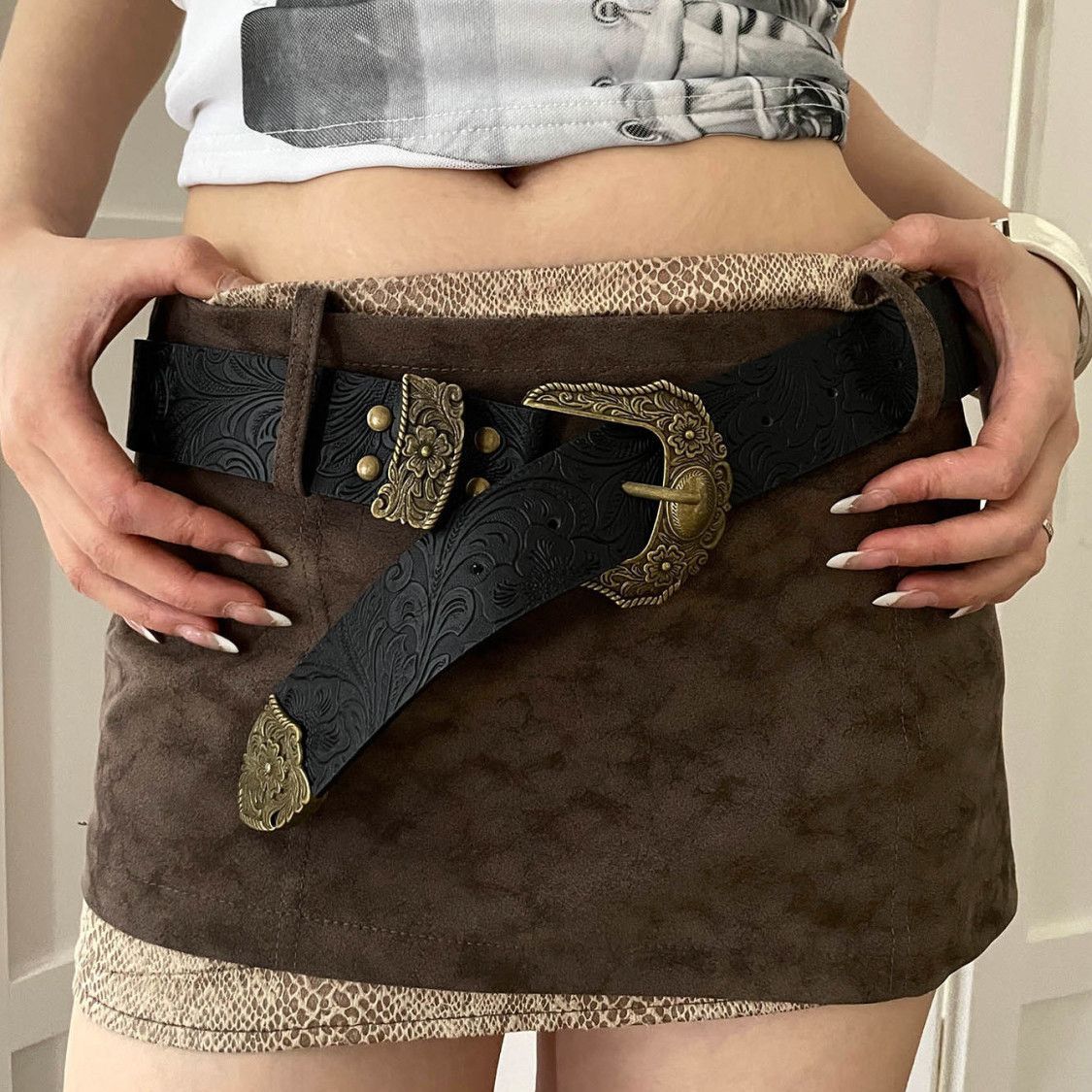 复古压花ins风腰带新款y2k西米亚民族百搭牛仔裤皮带高级感皮带