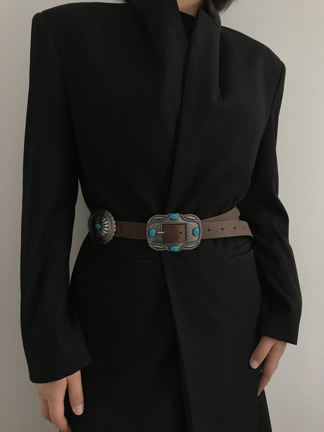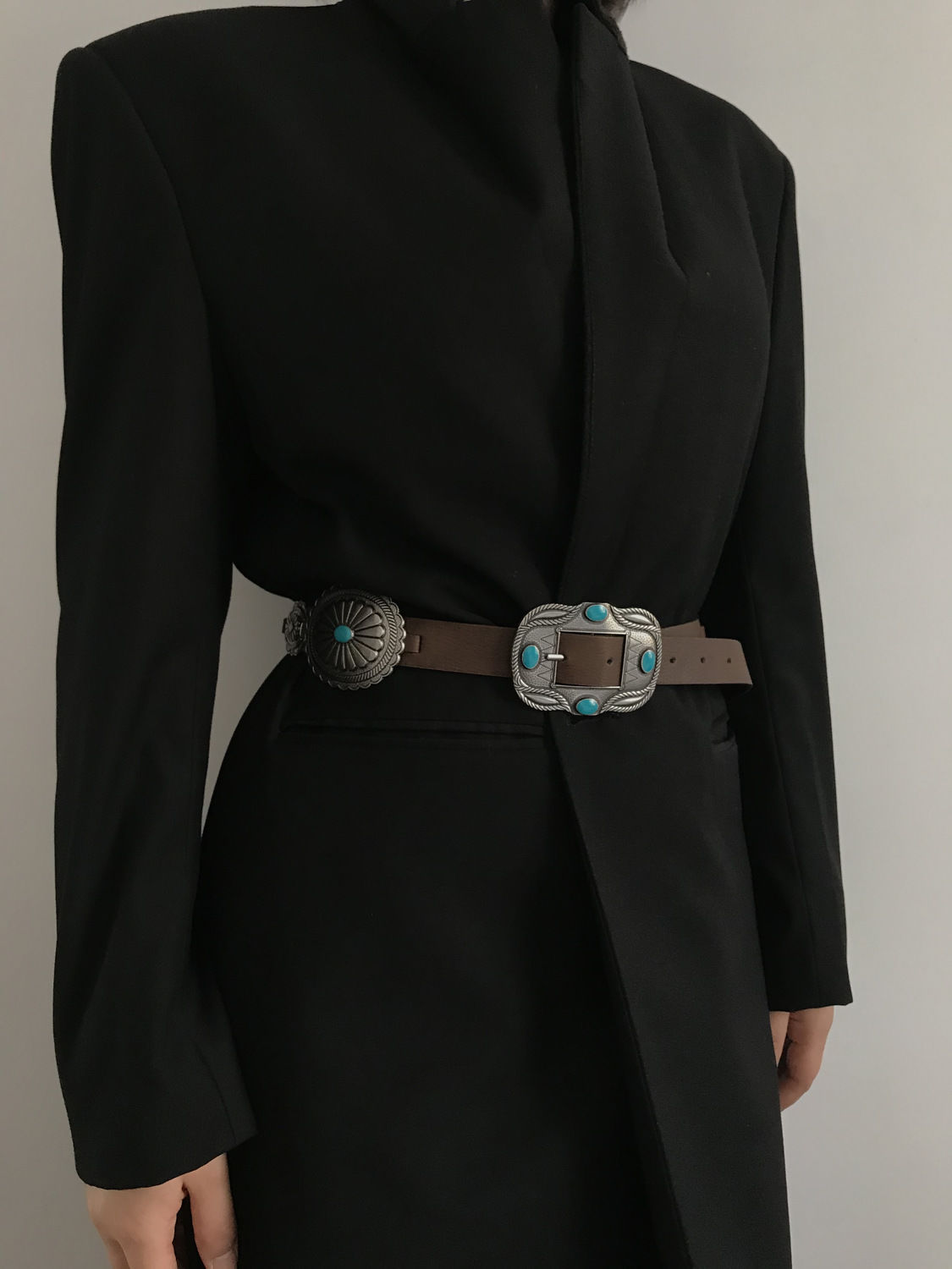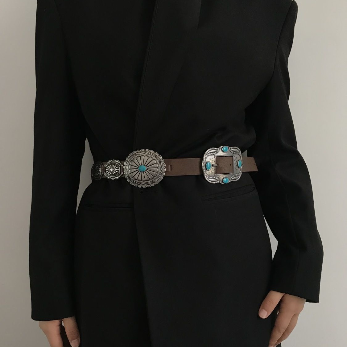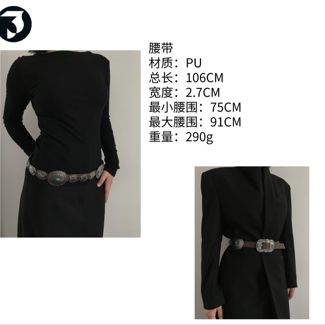 复古三环路雕花民族风腰带夏季新款休闲百搭西部花纹宝石皮带通用