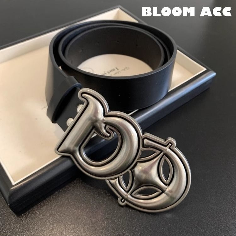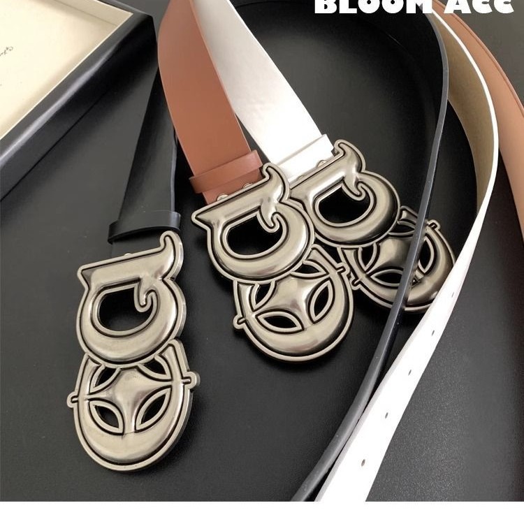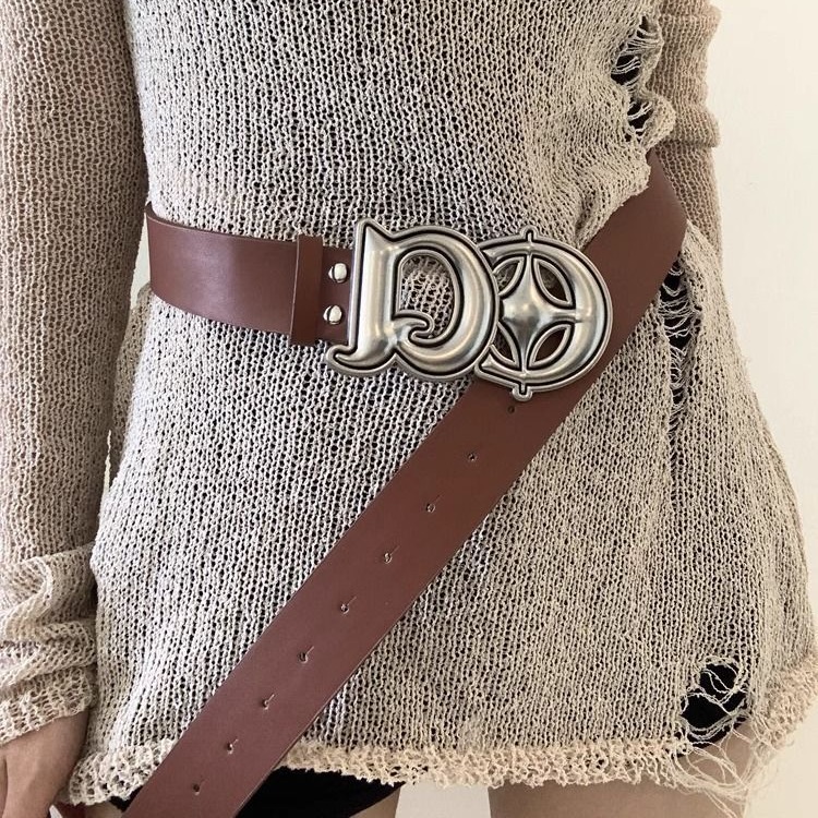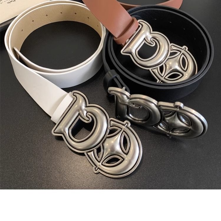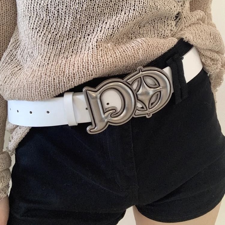 复古百搭银色DQ字母扣皮革皮带简约宽版工装牛仔配饰装饰带潮