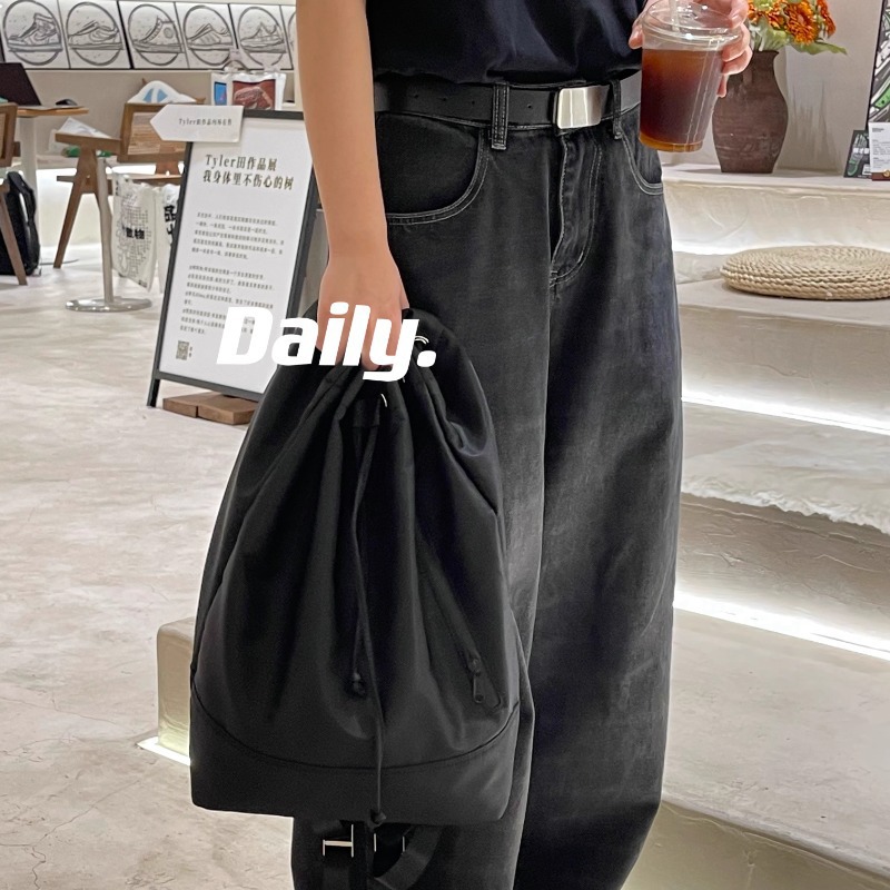 美式休闲三条杠条纹束脚运动裤女24新款宽松高腰显瘦两穿阔腿裤子