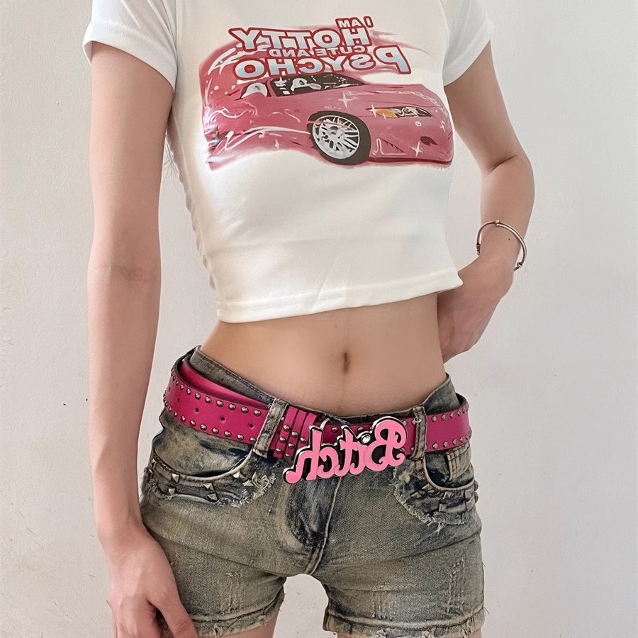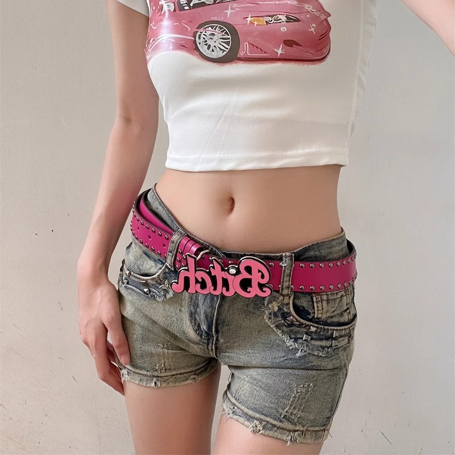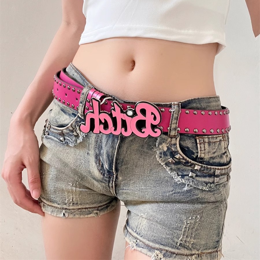 复古Bichi美式辣妹芭比粉色字母腰带多巴胺朋克小众街头亚比皮带