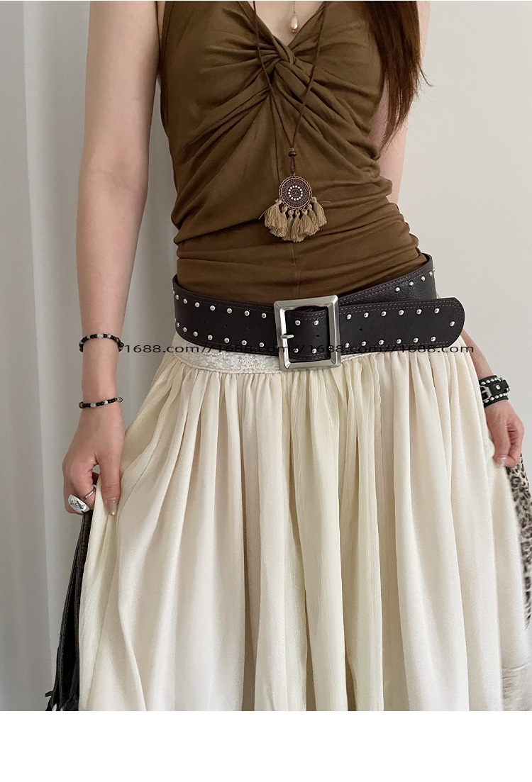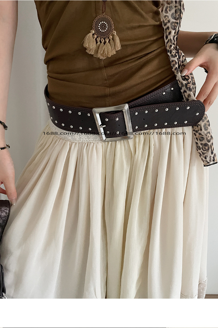 朋克风宽版铆钉腰带女复古小众设计感裙子牛仔裤带配饰高级感皮带