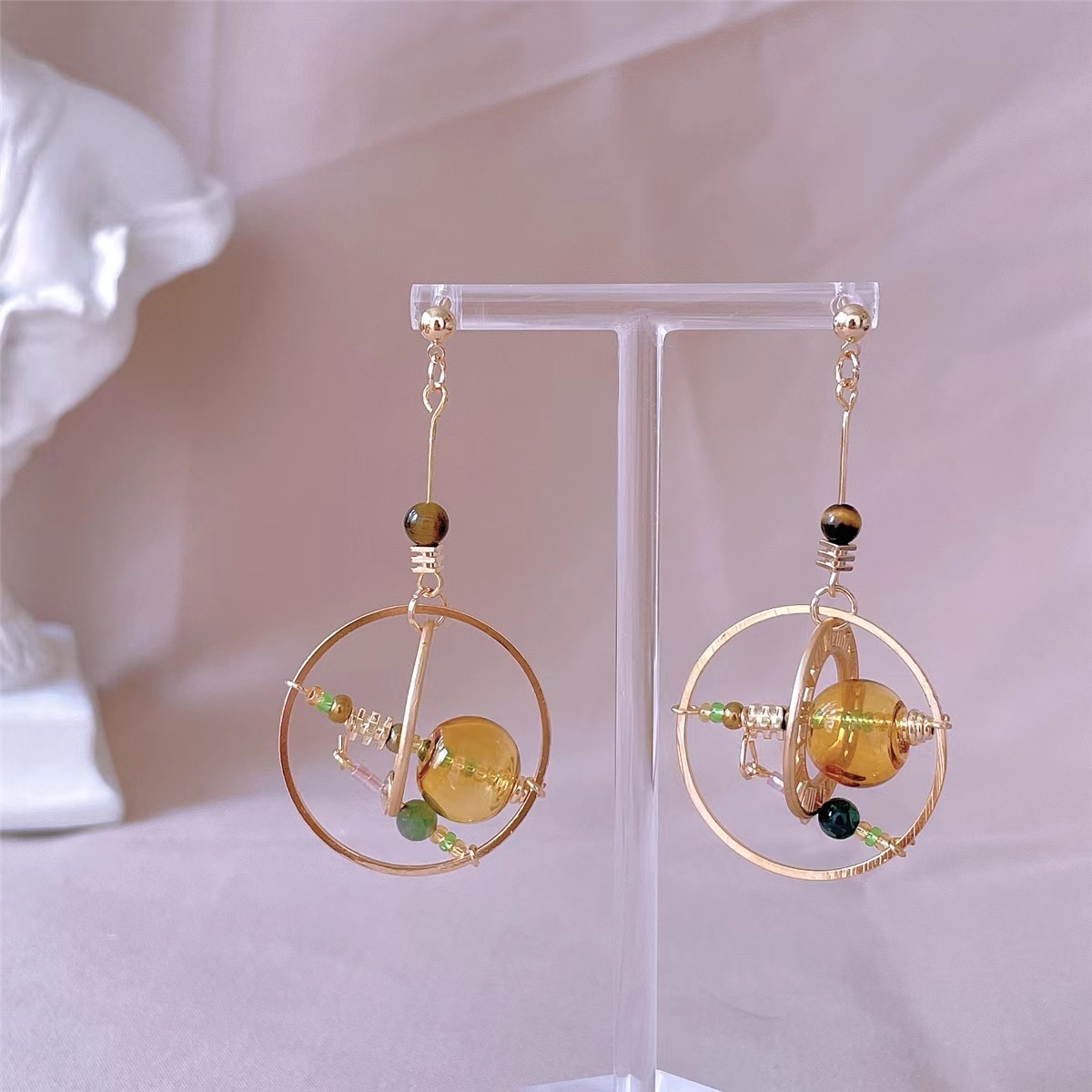 新款个性不对称手作复古小众几何蒸汽土星气泡造型耳坠 耳环