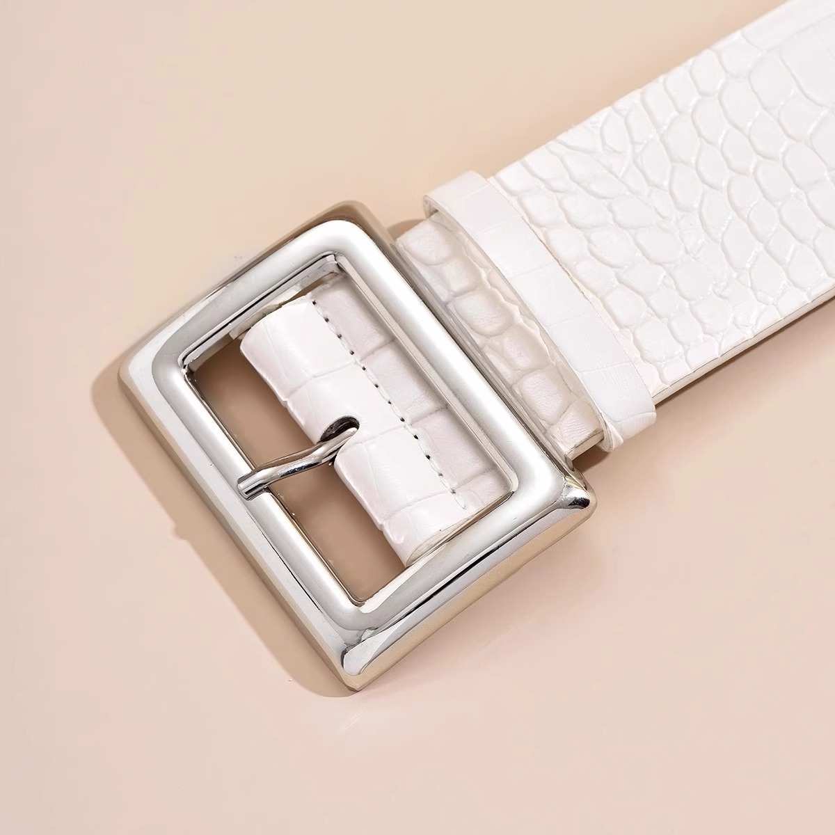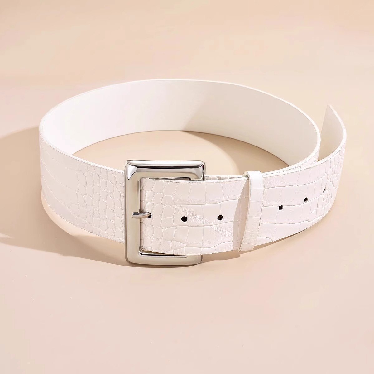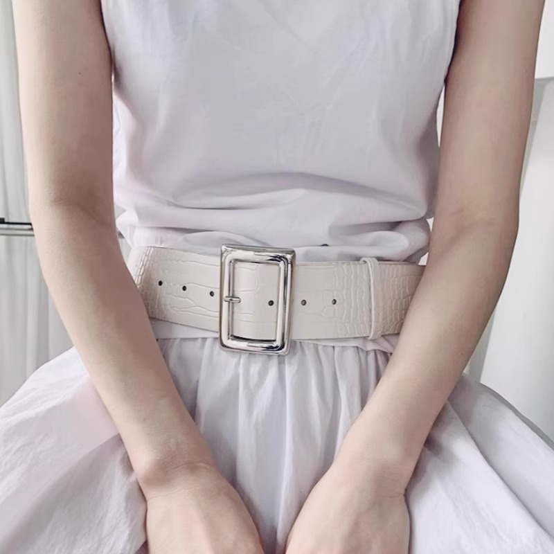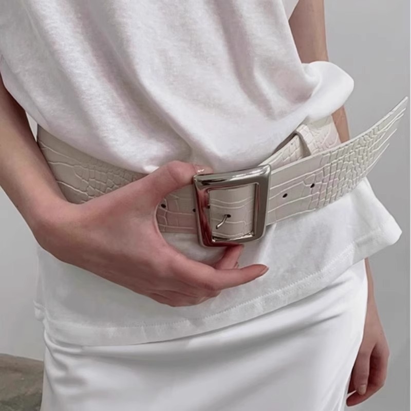 2025搭配时髦经典宽版金属大方扣鳄鱼纹路腰带女士宽腰封个性时尚