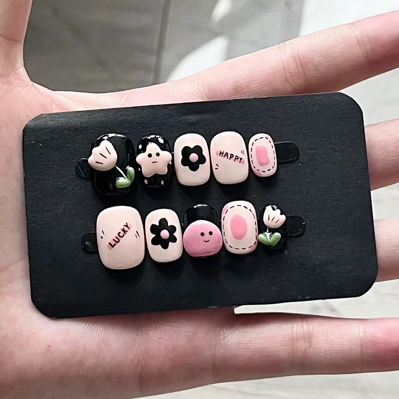 儿童穿戴甲可爱花朵女童美甲甲片成品24片可拆卸卡通假指甲片