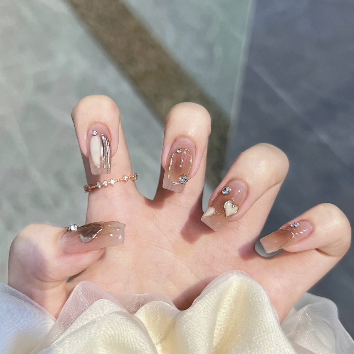 【奶油甜心】手工穿戴甲纯欲显白焦糖琥珀冰透美拉德腮红渐变