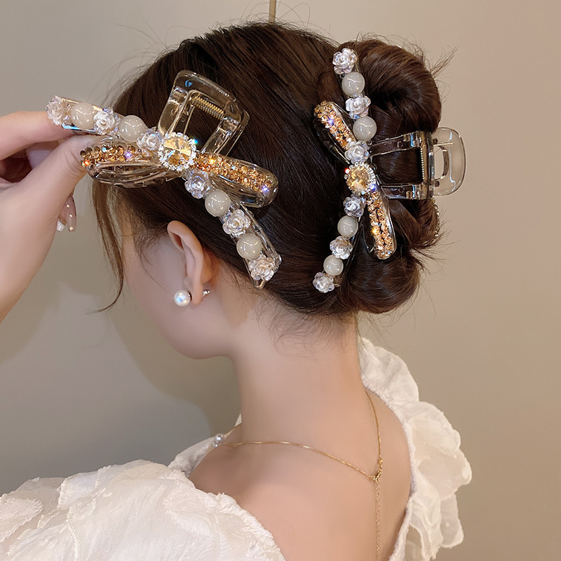 轻奢精致闪钻圆珠抓夹大号发饰女新款高级感盘发鲨鱼夹发夹