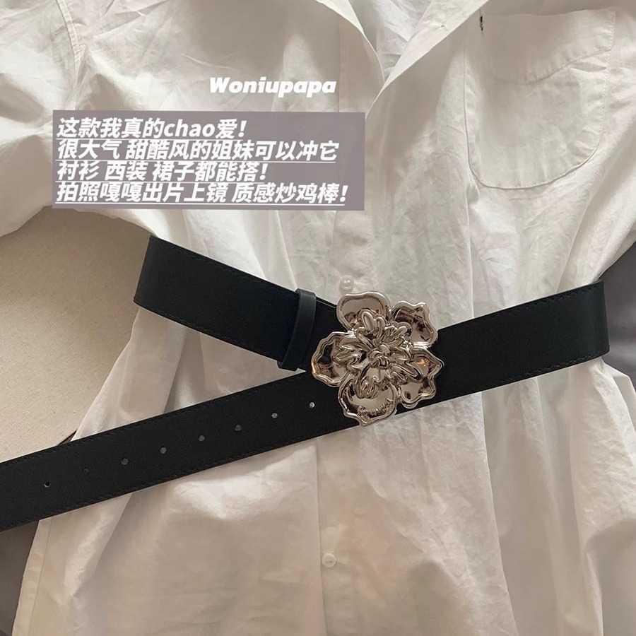 欧美风个性皮带女夏季短裤短裙腰链配饰朋克花朵按扣休闲裤带