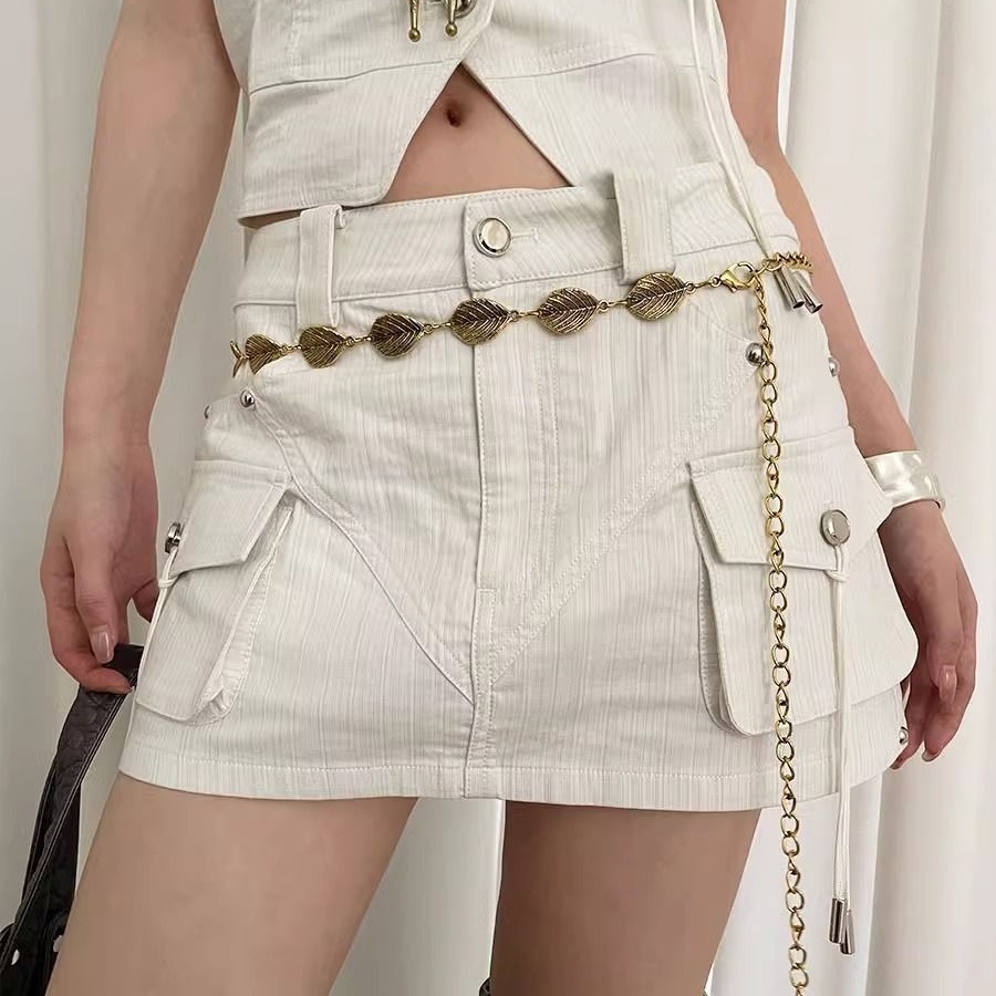 金属复古腰链女银色百搭高级感树叶装饰民族风配牛仔短裤韩版腰带