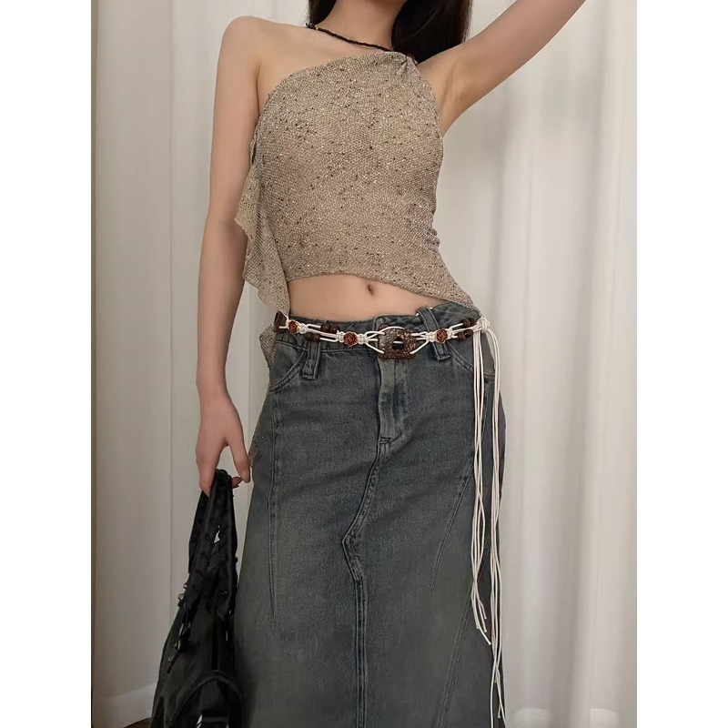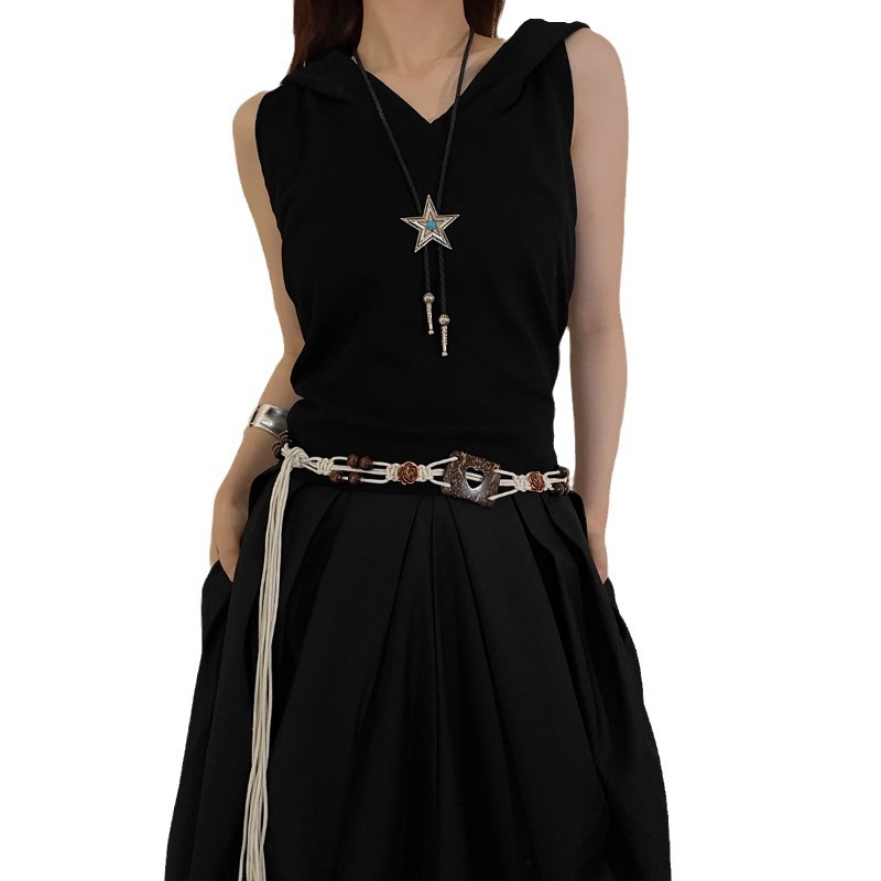 复古民族风腰带女干枯玫瑰设计感裙子连衣裙配饰编织爱心镂空腰绳