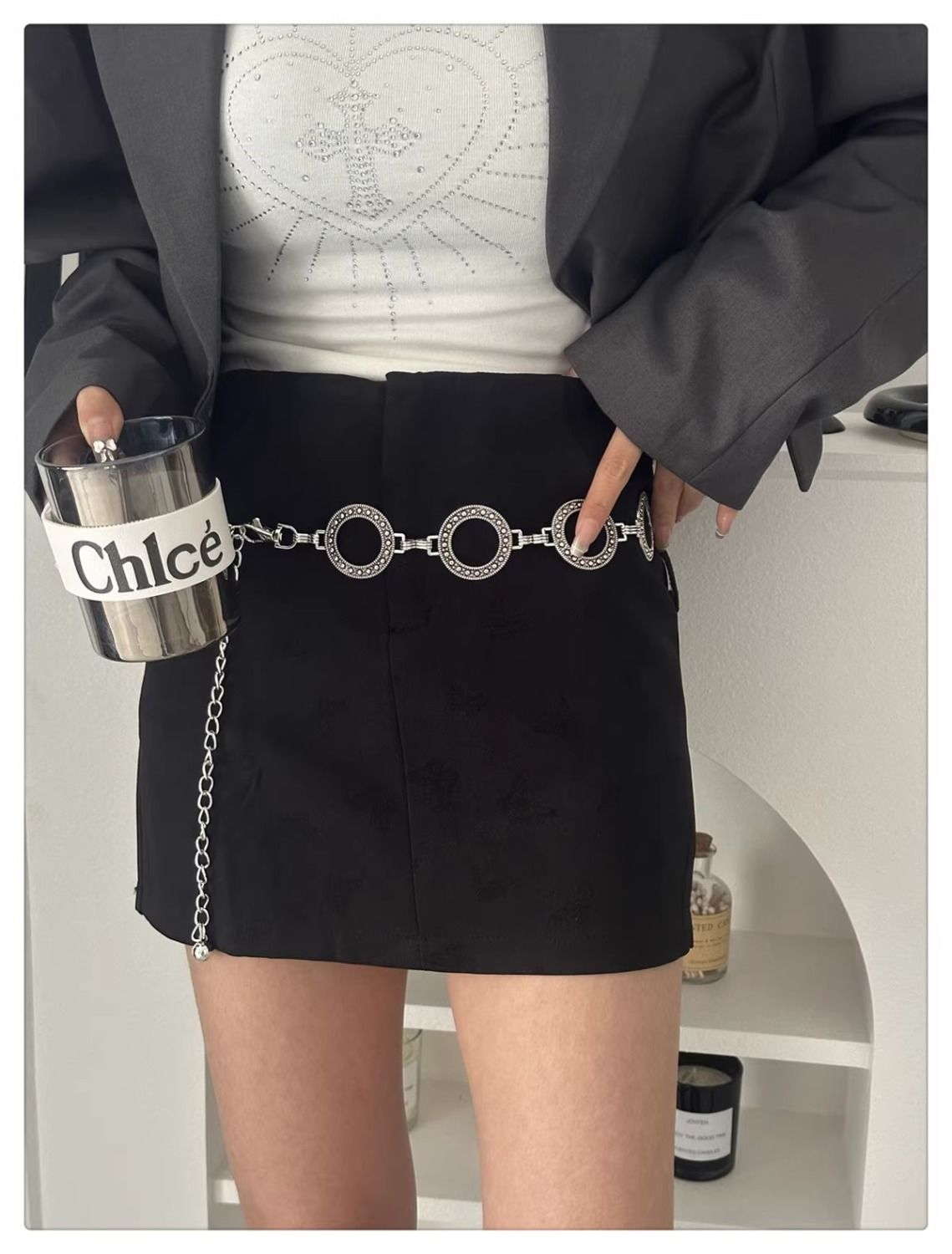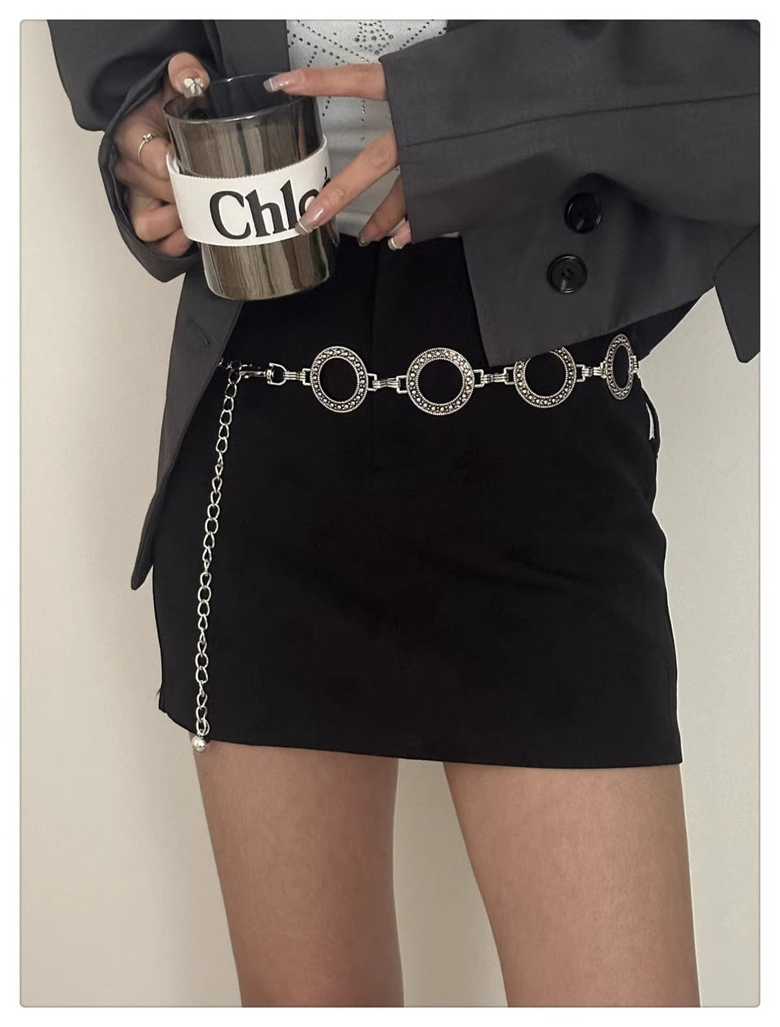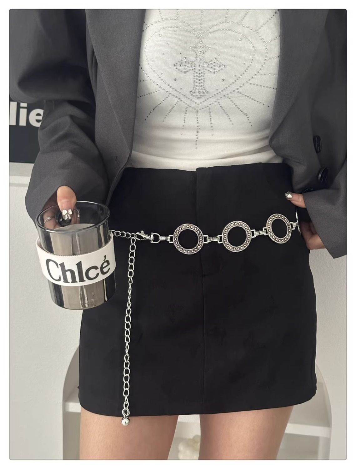圆圈金属腰链银色配饰镂空设计简约复古百搭腰带配连衣裙高级感潮
