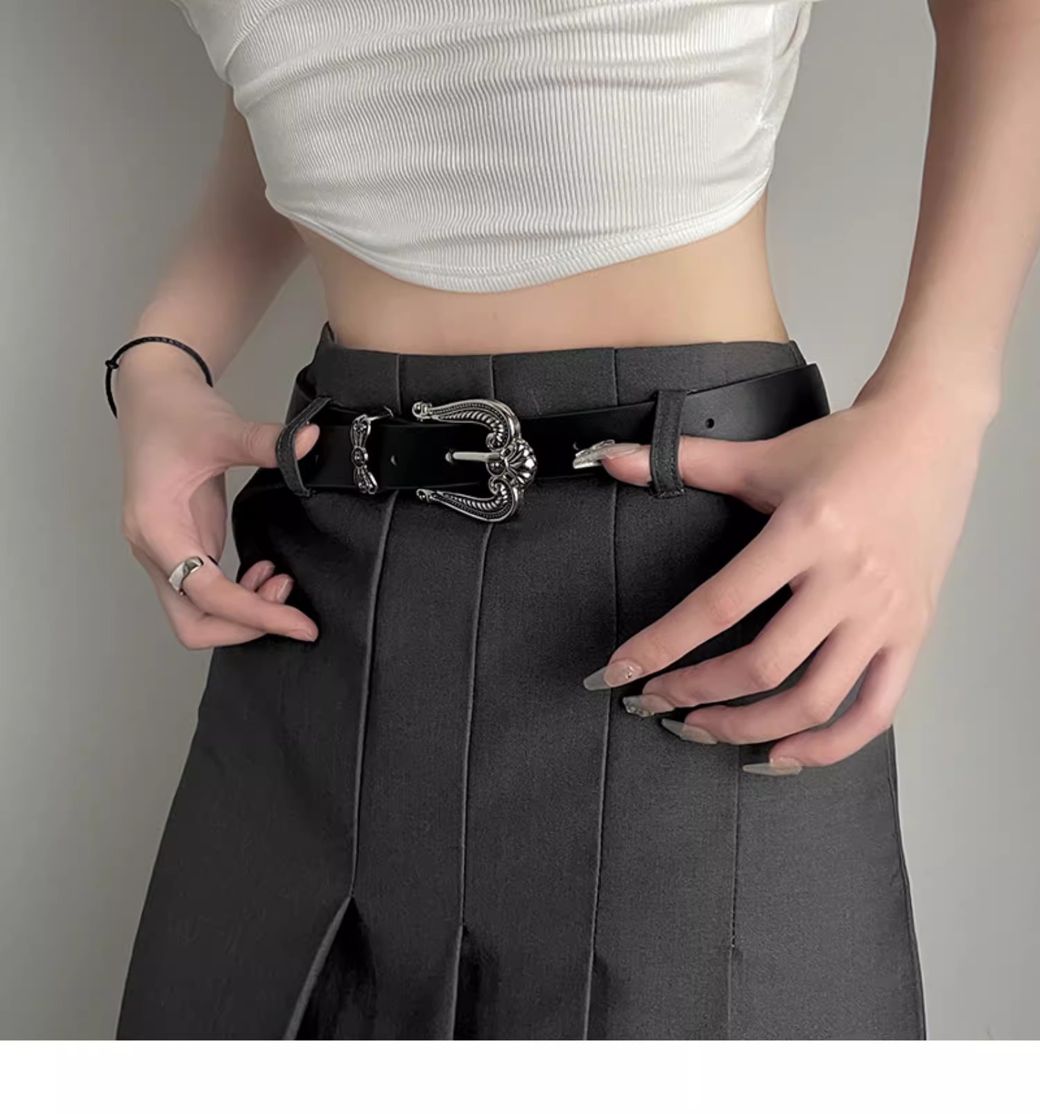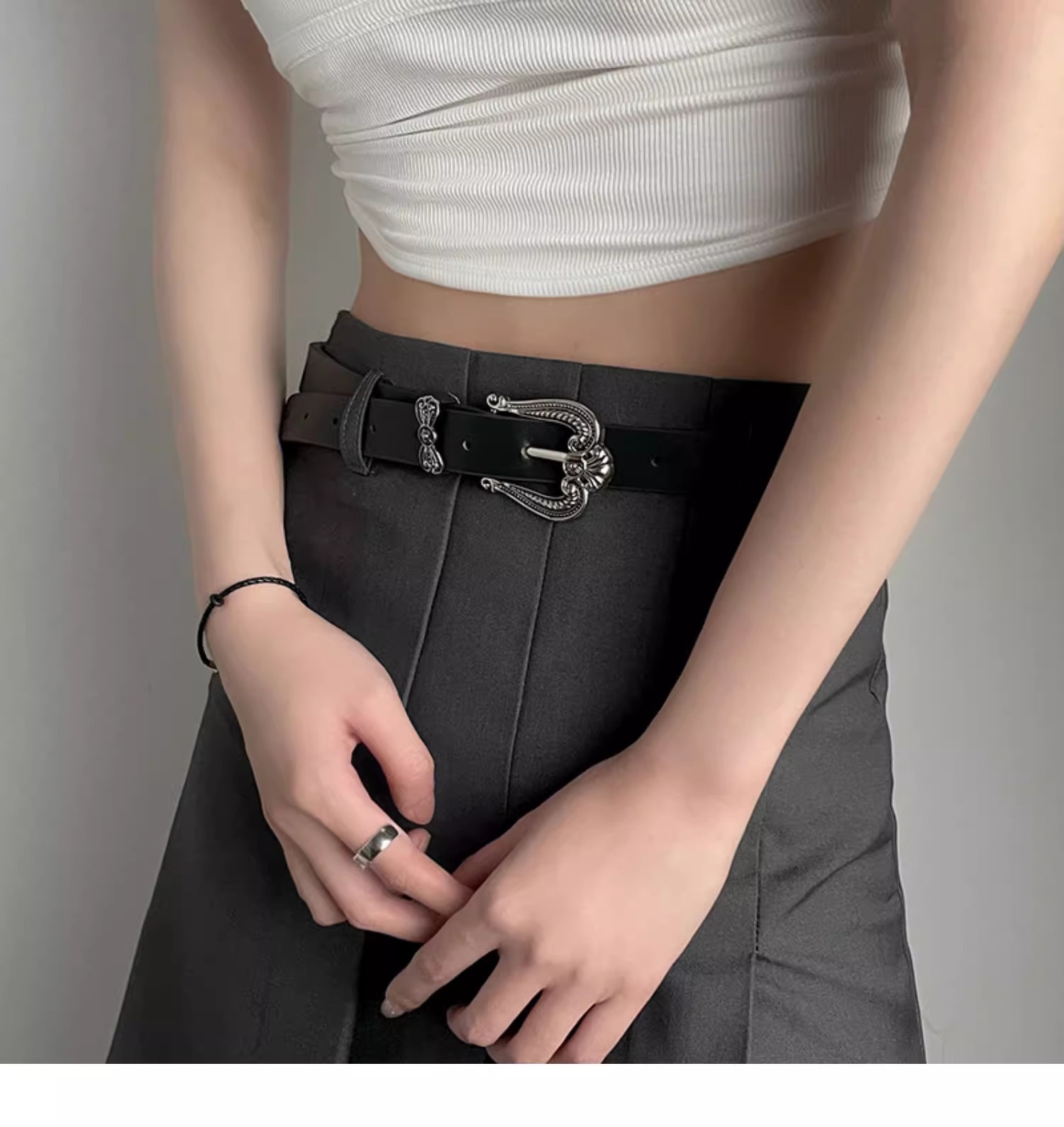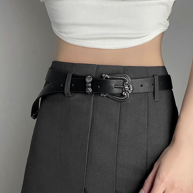 皮带女士ins风夏季高级感百搭装饰美式复古小众设计感黑色腰带潮