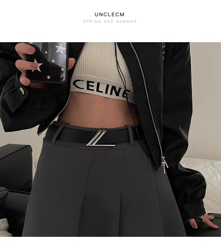腰带女设计感小众装饰ins风高级感百搭平滑扣黑色皮带百搭时尚潮