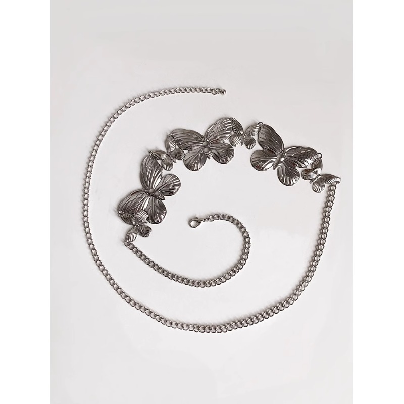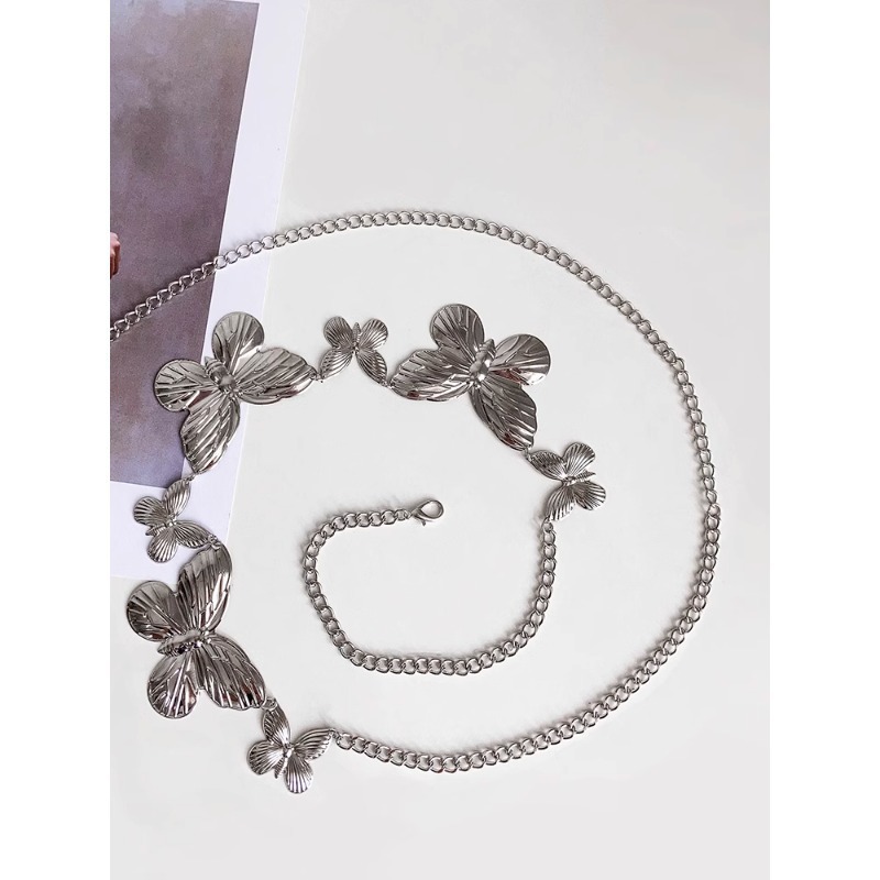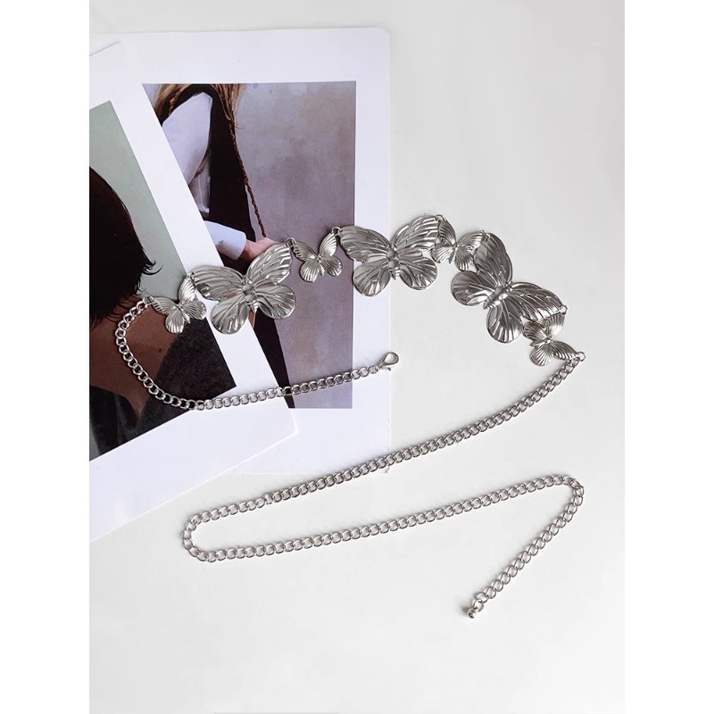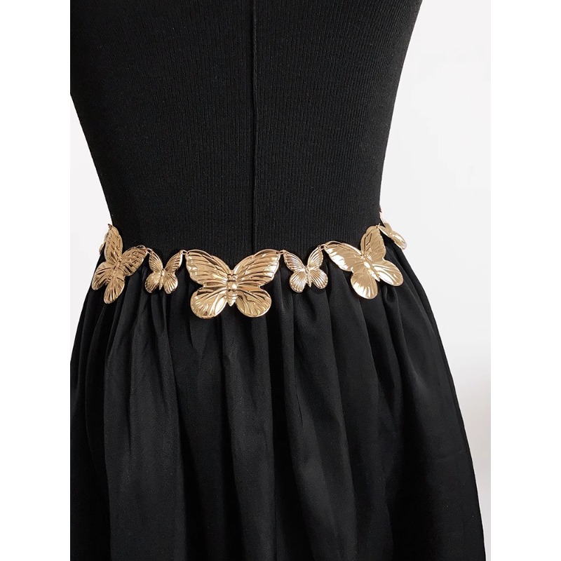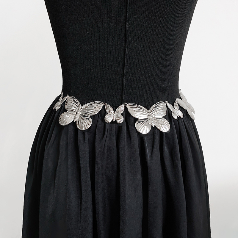 黑色连衣裙腰链配饰蝴蝶高级感复古皮带简约银色链条新款腰带