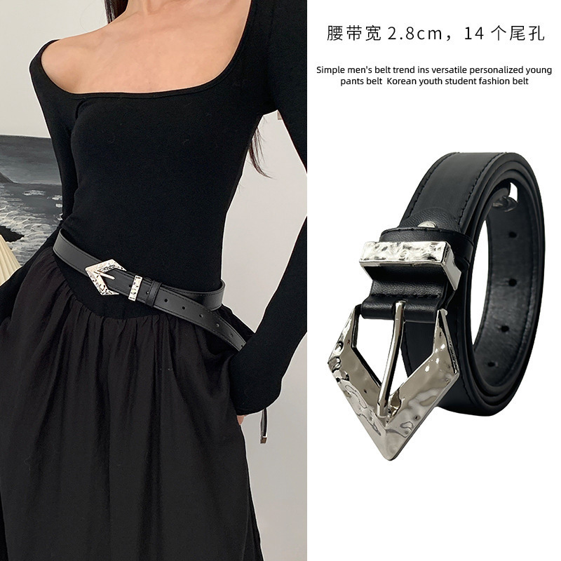 新款高级感女士皮带百搭针扣个性腰带简约时尚黑色装饰裤带潮