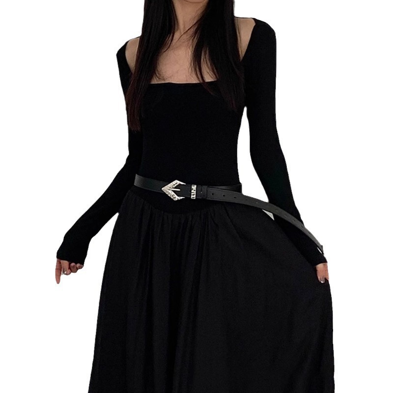 欧美性感风夜店辣妹镂空露腰高开叉挂脖露背黑色长裙收腰连衣裙女