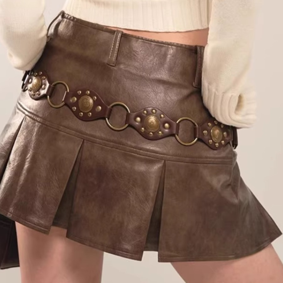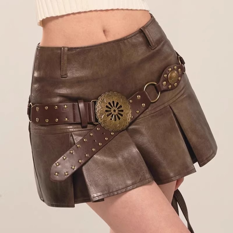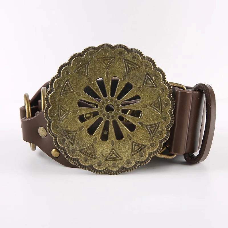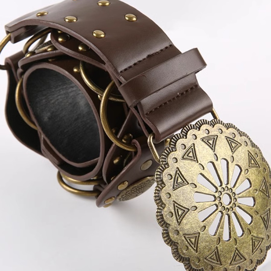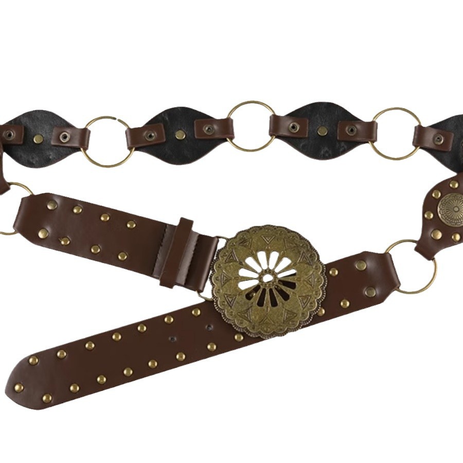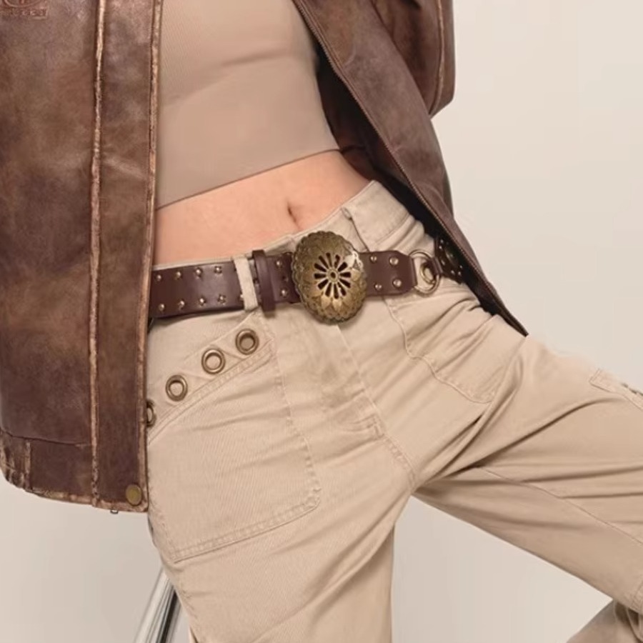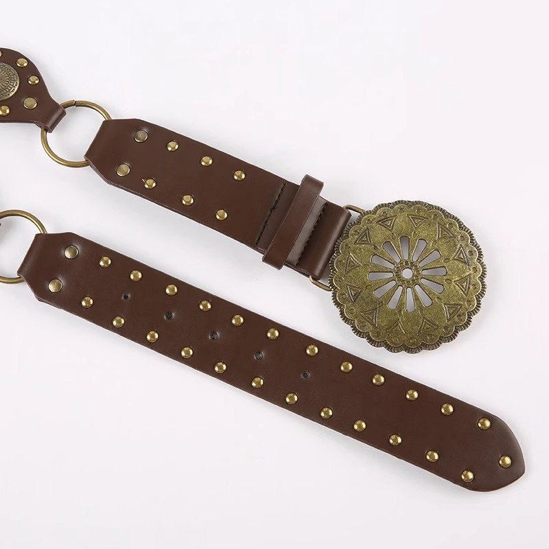 美式西部牛仔风铆钉腰带女复古vintage辣妹圆形腰封皮带