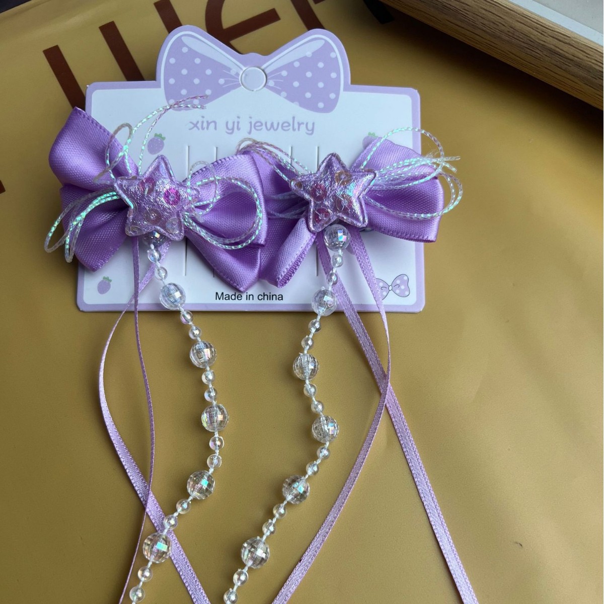 新年头饰儿童红色蝴蝶结发夹小女孩汉服长飘带发卡超仙后脑勺发饰