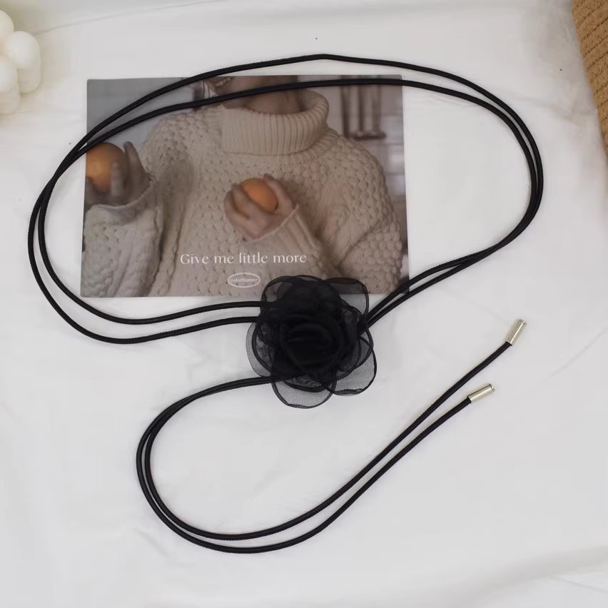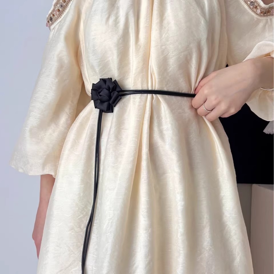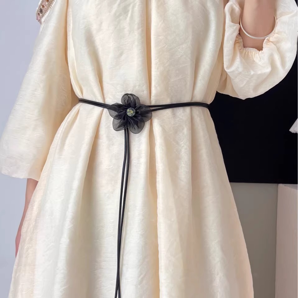 2025新款布艺花朵细腰带女装饰连衣裙时尚高级感配饰柔软腰绳辣妹