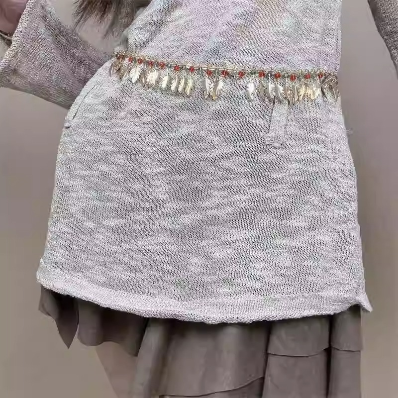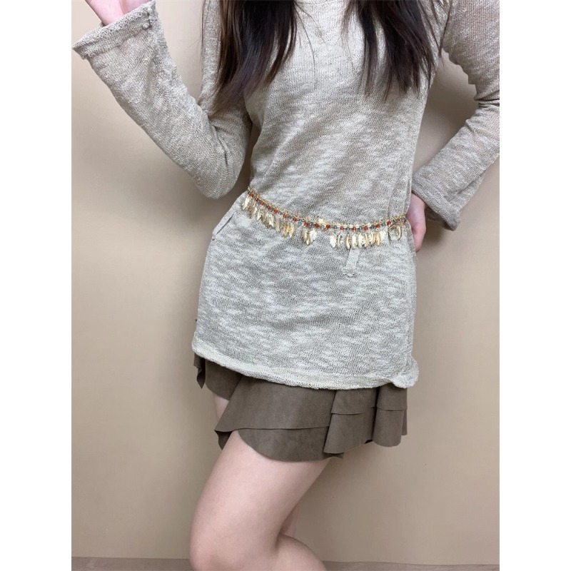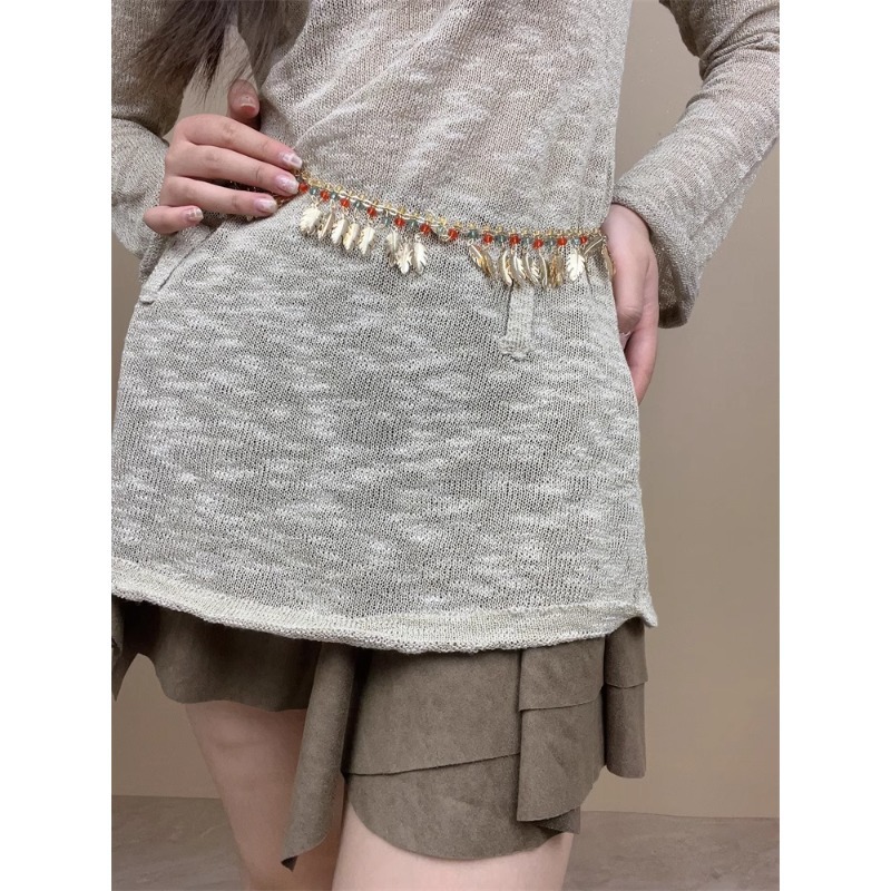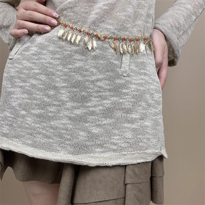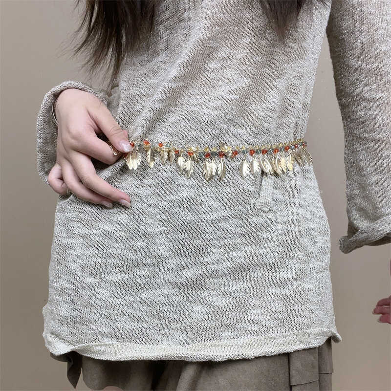 民族风流苏链子腰带配饰女羽毛金属腰链配裙子肚脐舞链条波西米亚