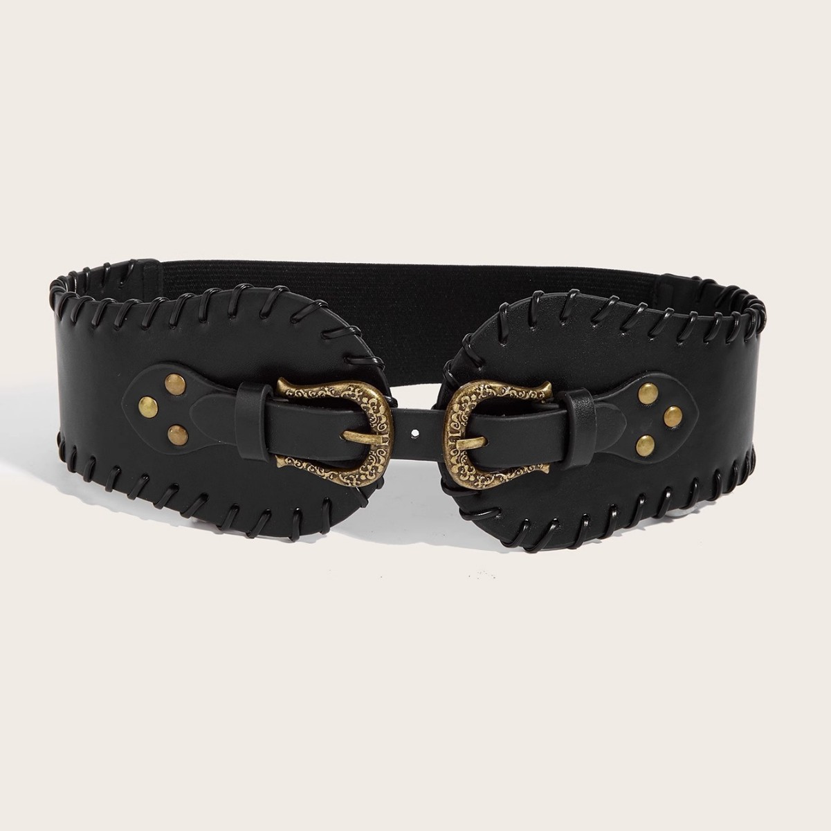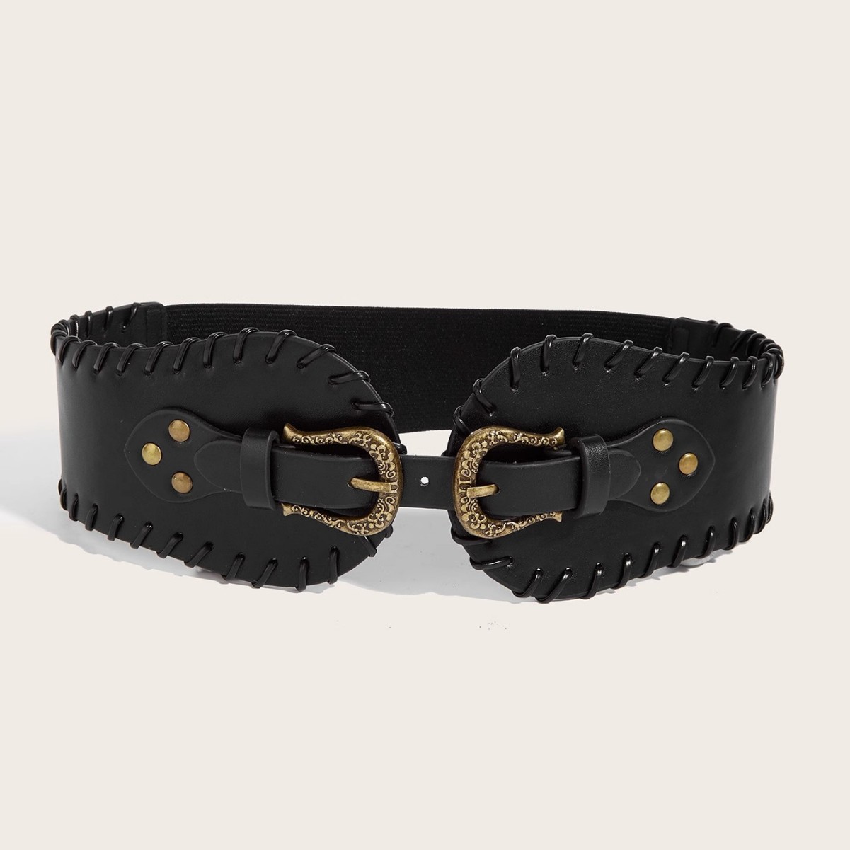 宽腰带女复古高级感时尚百搭装饰配裙子外搭潮铆钉朋克风腰封黑色