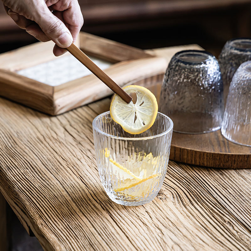 简约纹理感玻璃杯圆形透明水杯日常家用咖啡杯餐厅果汁杯牛奶杯子