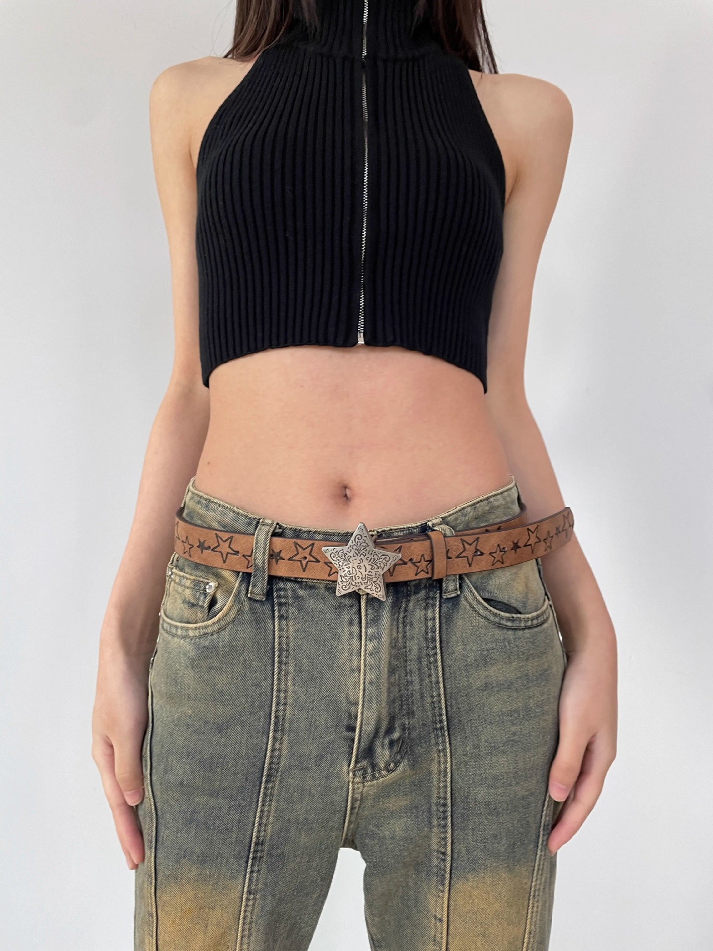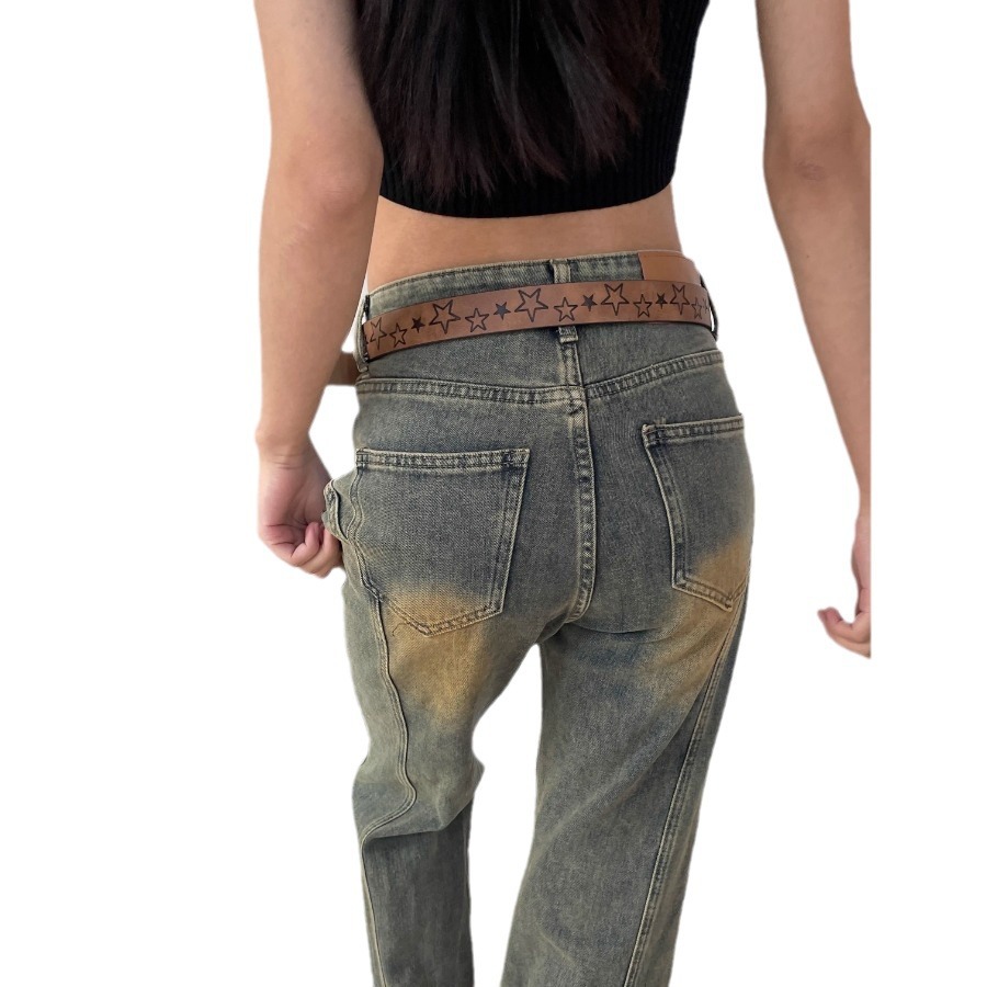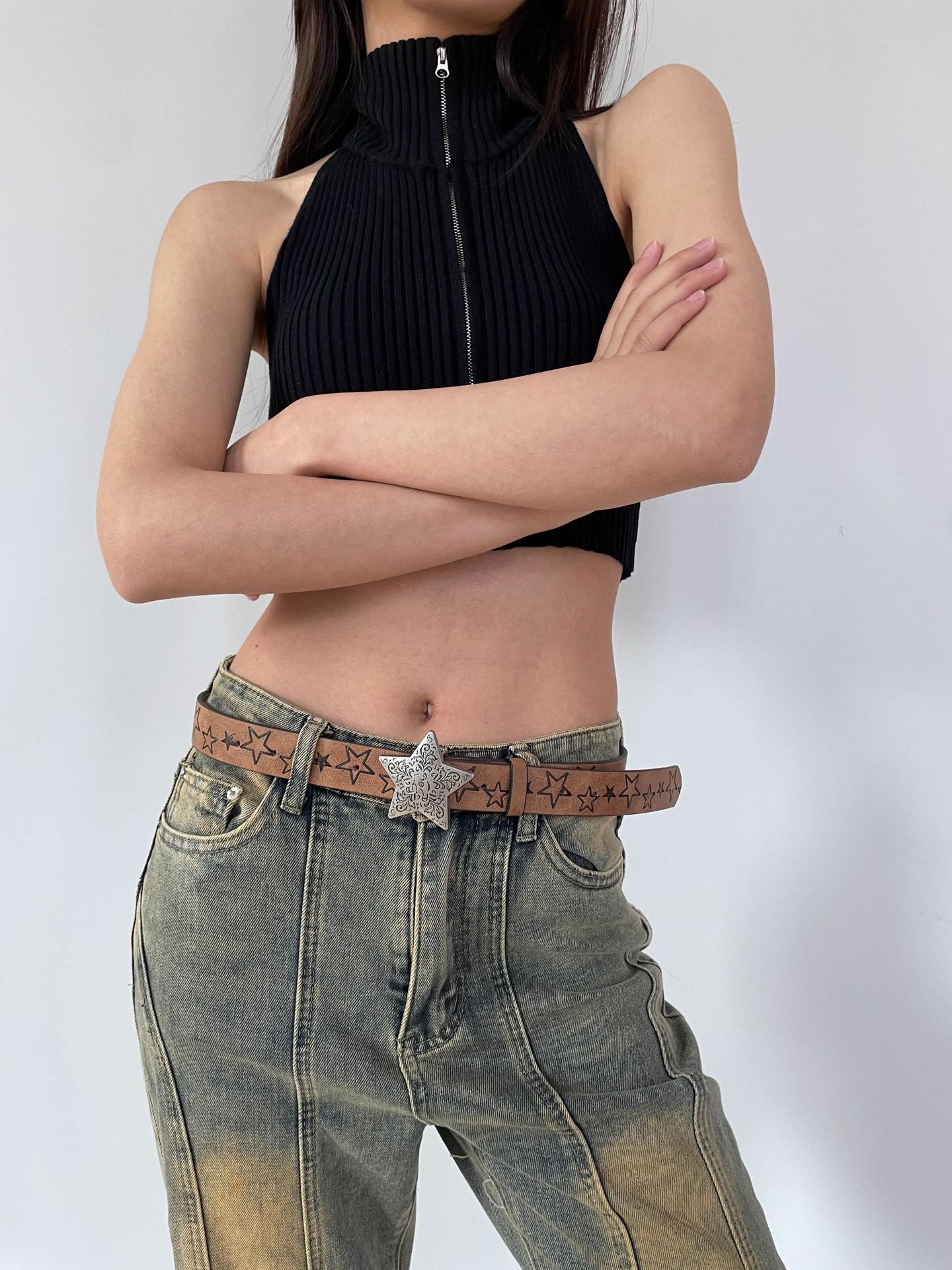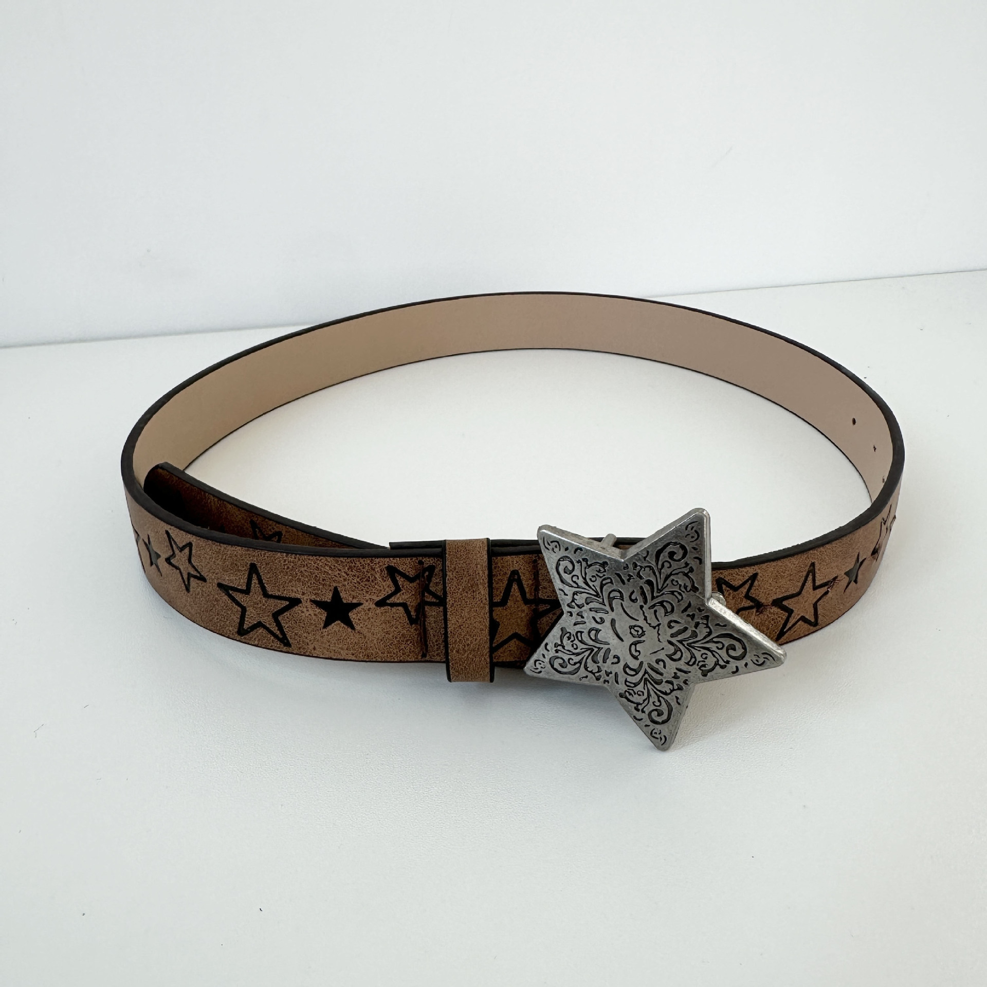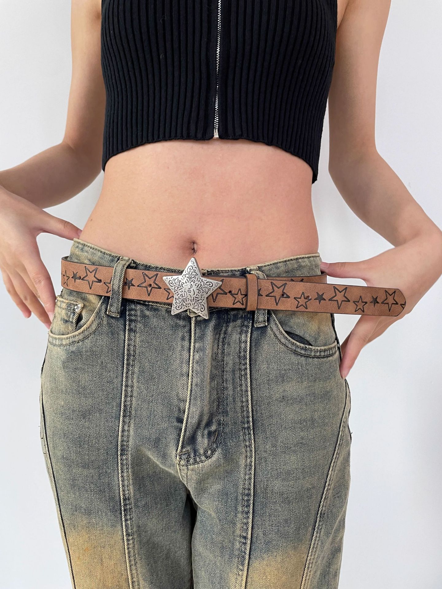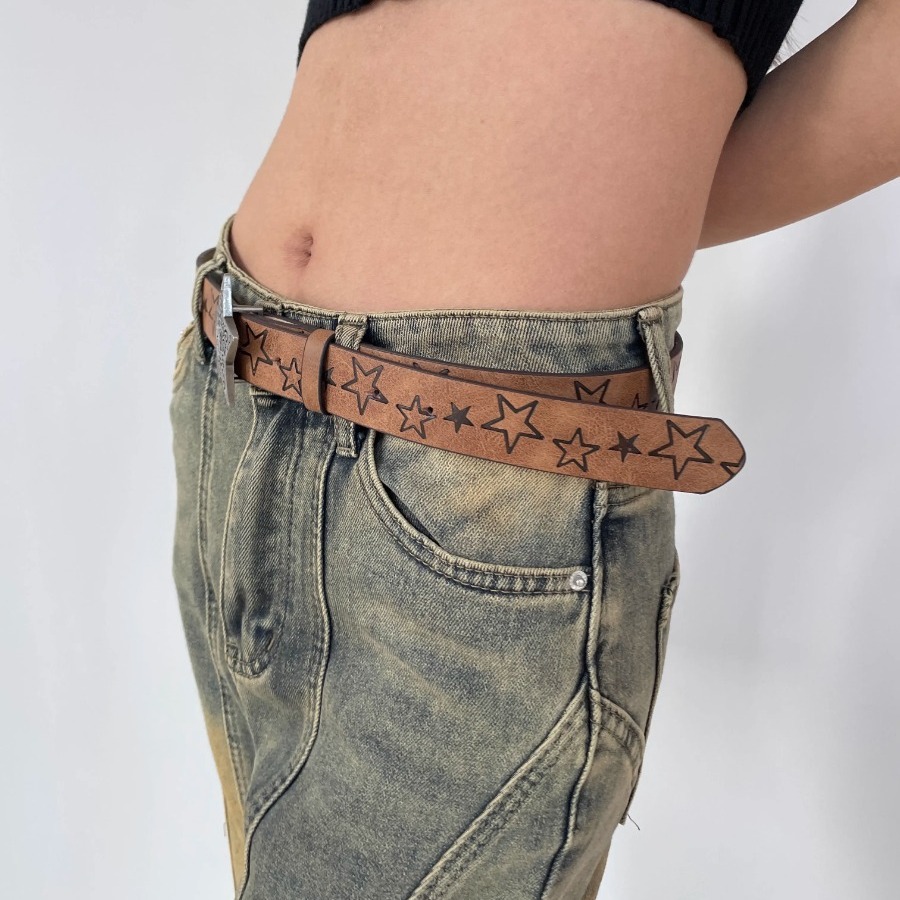 西部牛仔银扣五角星压花复古色皮带男女牛仔裤裙子百搭腰带腰封潮