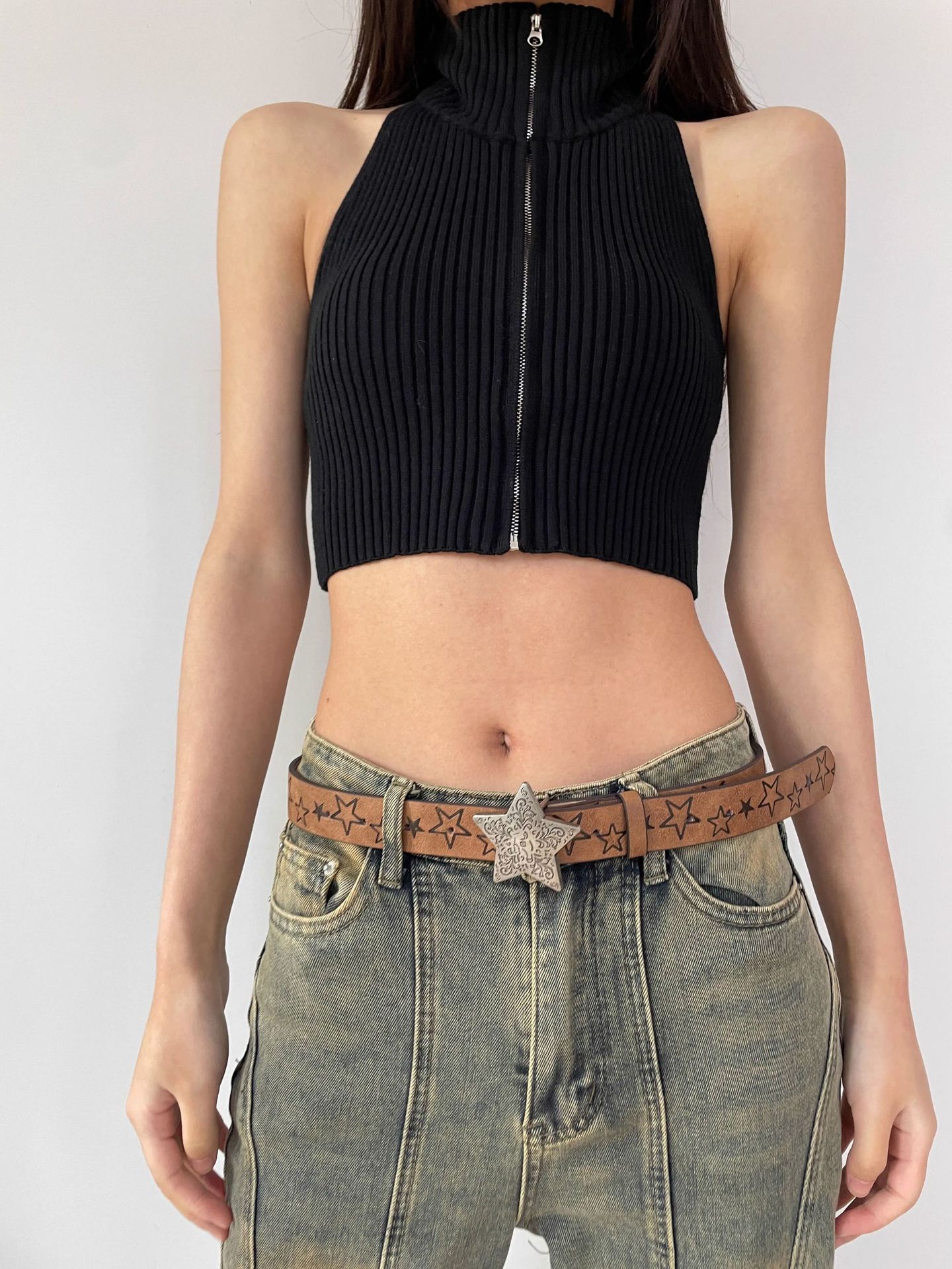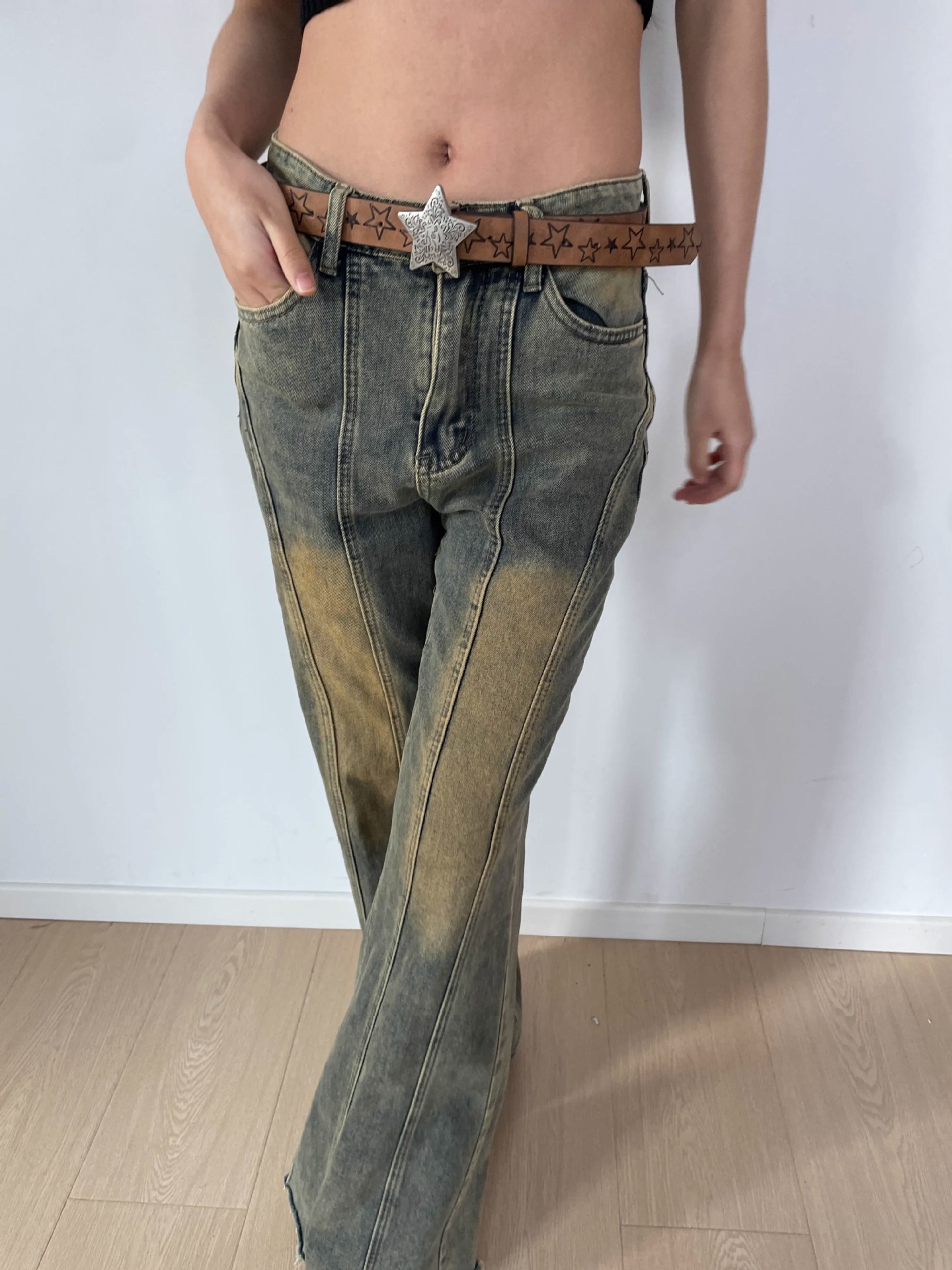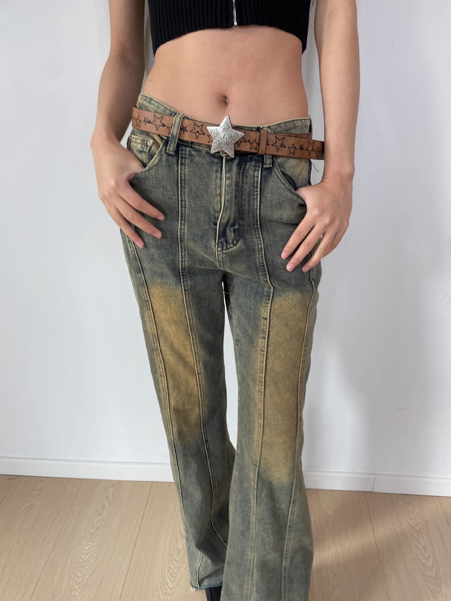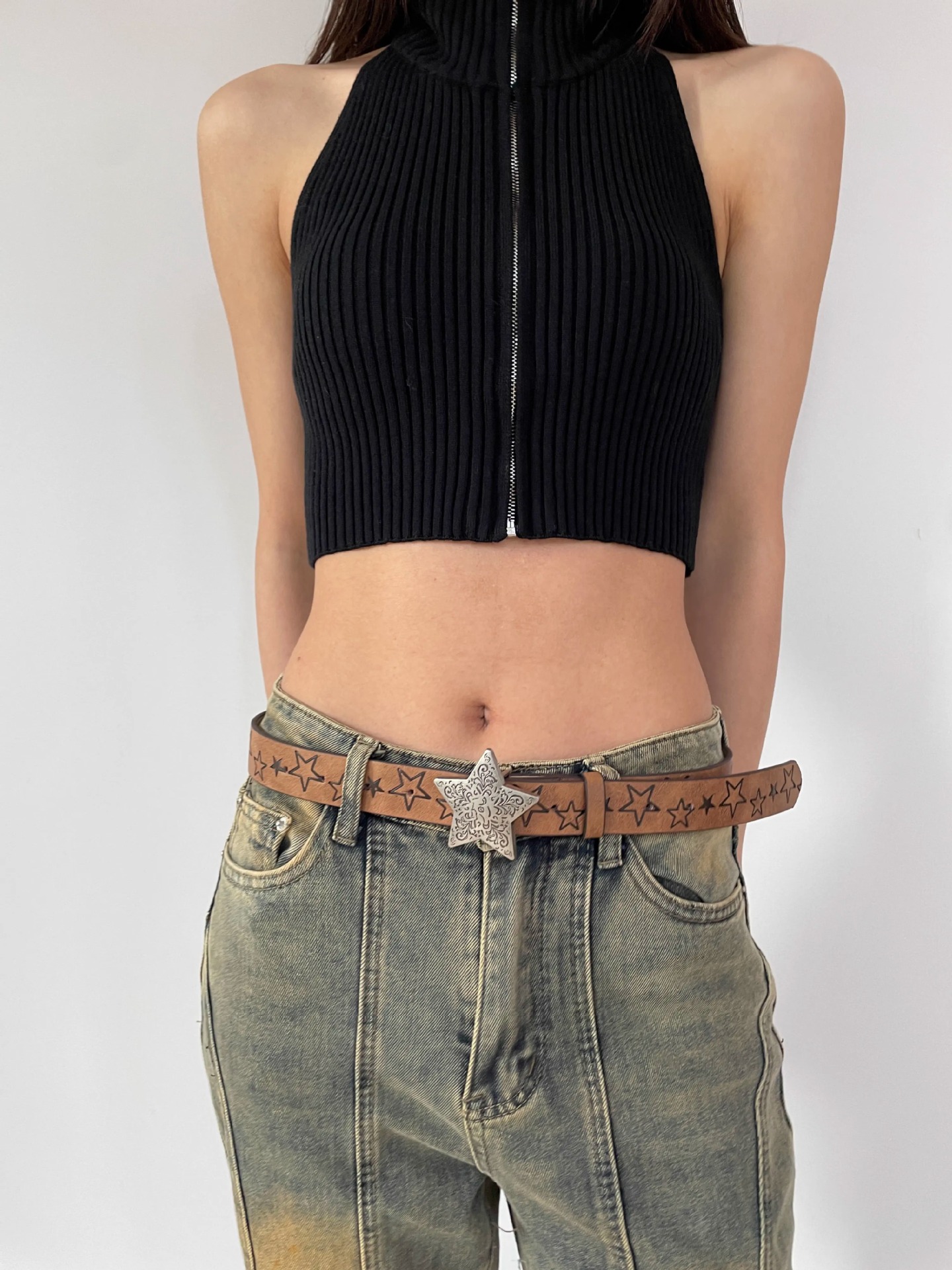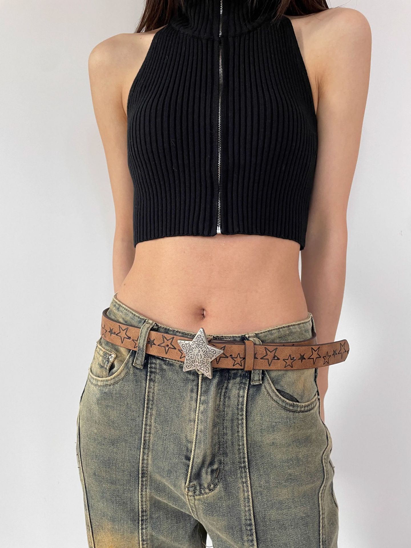 西部牛仔银扣五角星压花复古色皮带男女牛仔裤裙子百搭腰带腰封潮