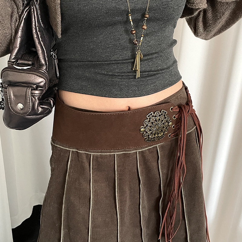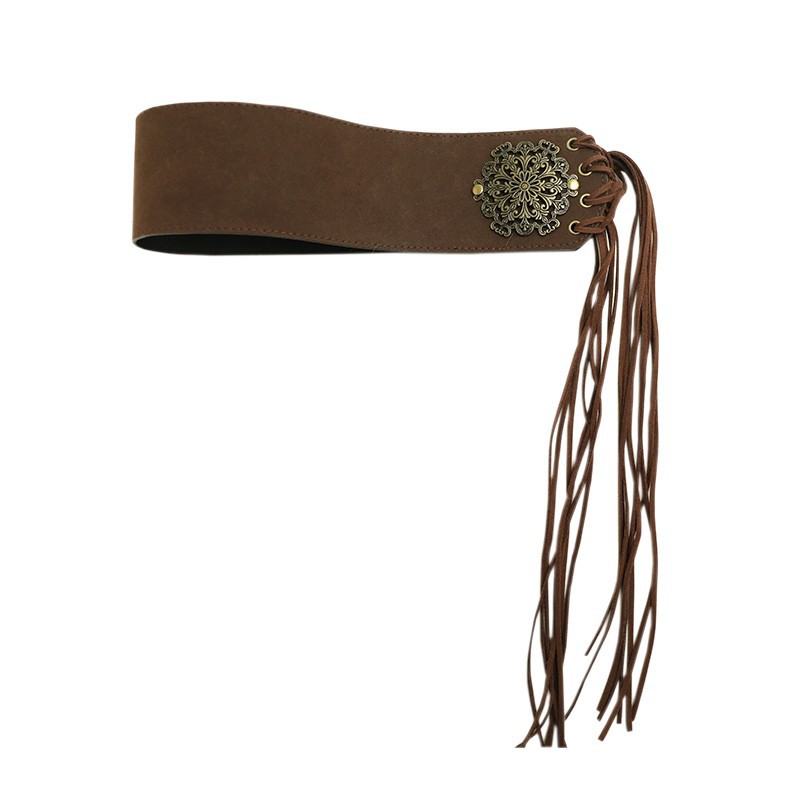 波西米亚民族风宽腰带女麂皮绒流苏显瘦腰封配裙子连衣裙皮带配饰
